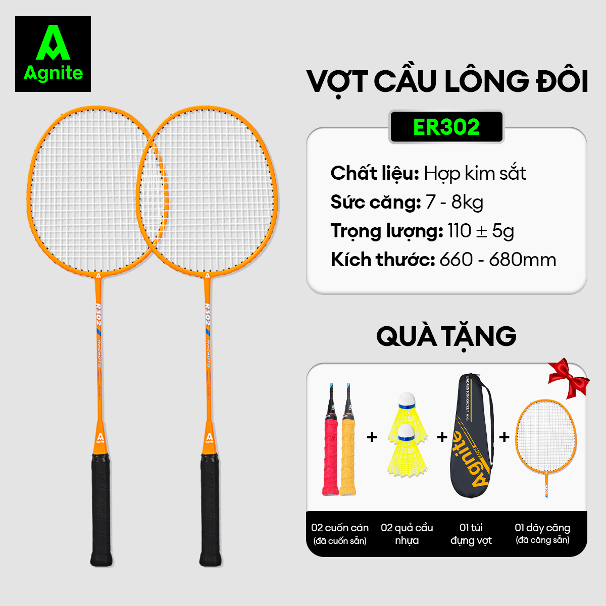 Thông số kỹ thuật [RẺ NHẤT MALL] Bộ 2 vợt cầu lông giá rẻ chính hãng Agnite, bền, nhẹ, tặng kèm túi vợt và quả cầu lông - ER301/ER302