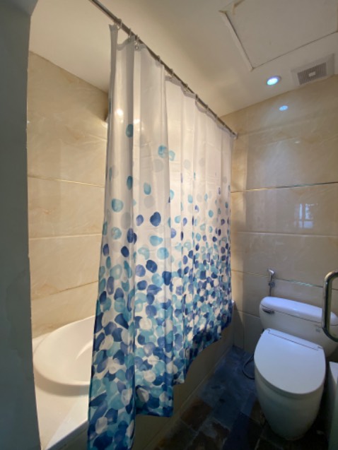 Rèm che phòng tắm được làm từ vải chống thấm chất lượng cao khiến không gian luôn thoáng mát, khô ráo và tiết kiệm tối đa diện tích cho không gian. Có thể dùng cho phòng tắm, che cửa chống nắ