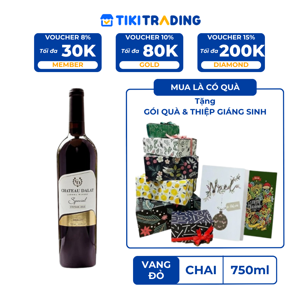 Thông số kỹ thuật Rượu Vang Đỏ Ladofoods Chateau Dalat Special Merlot 750ml 12,5% - Không Kèm Hộp