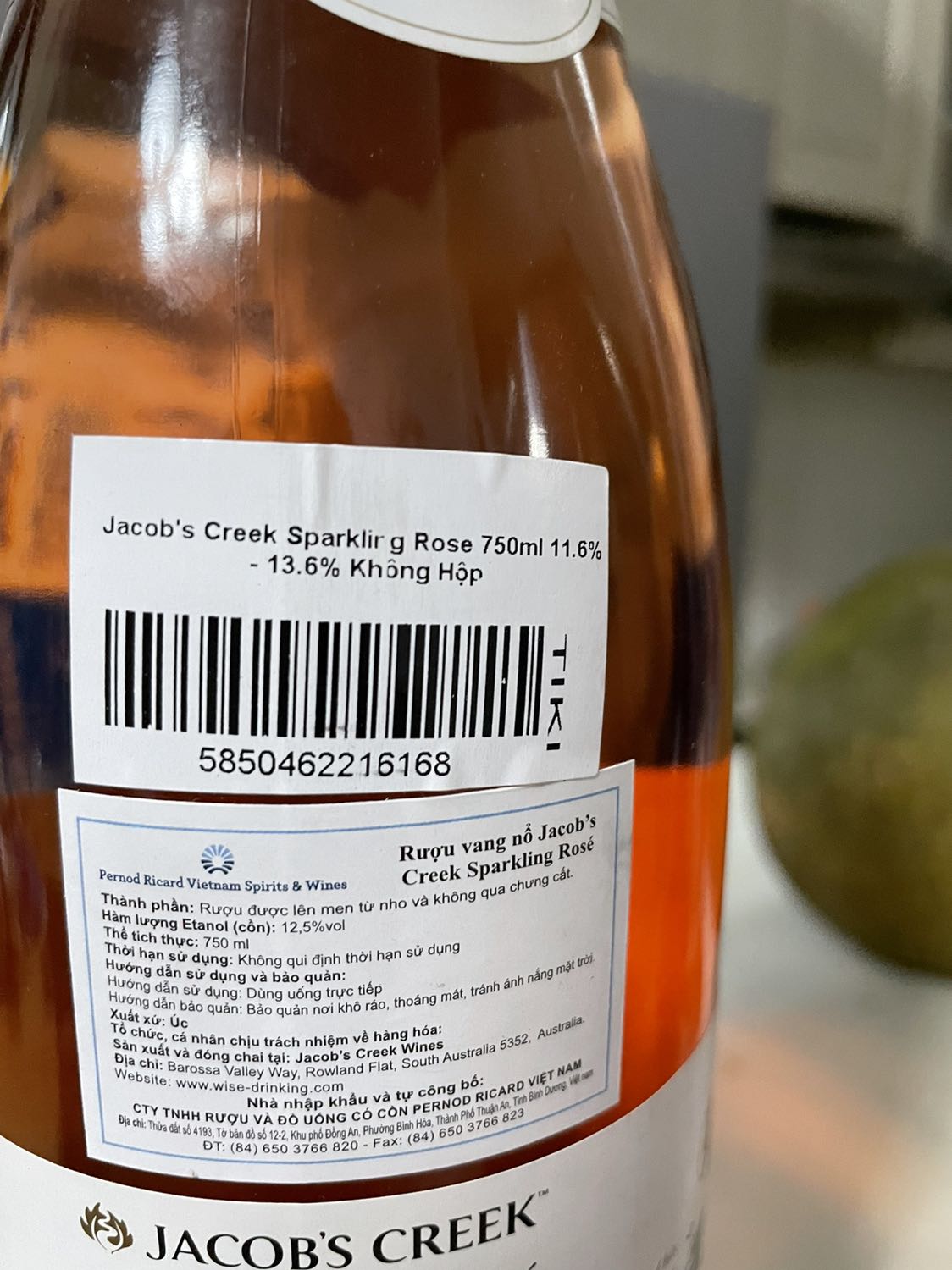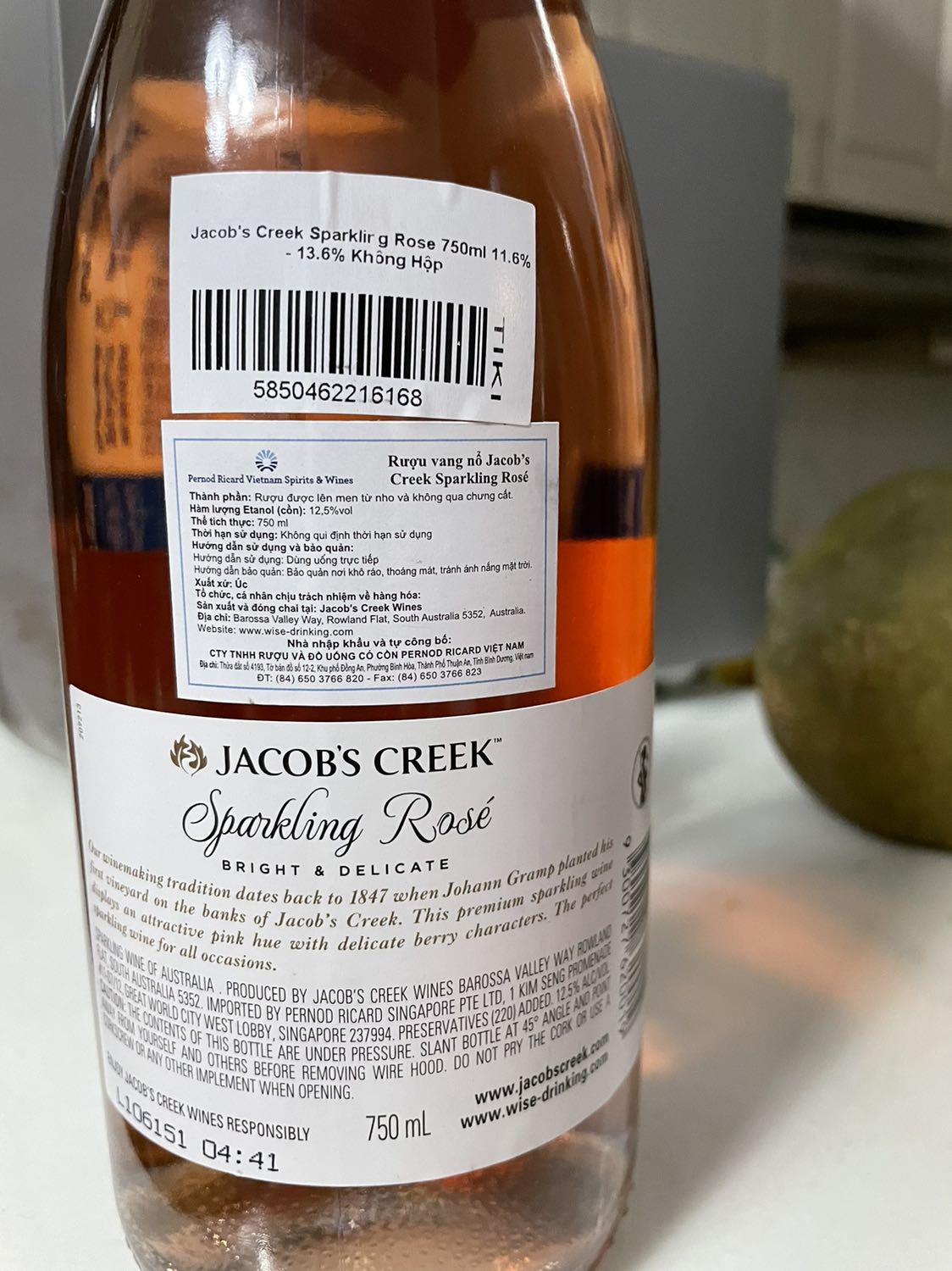 Thông số kỹ thuật Rượu vang nổ hồng Jacob's Creek Sparkling Rose 750ml 11-13% - Không Hộp