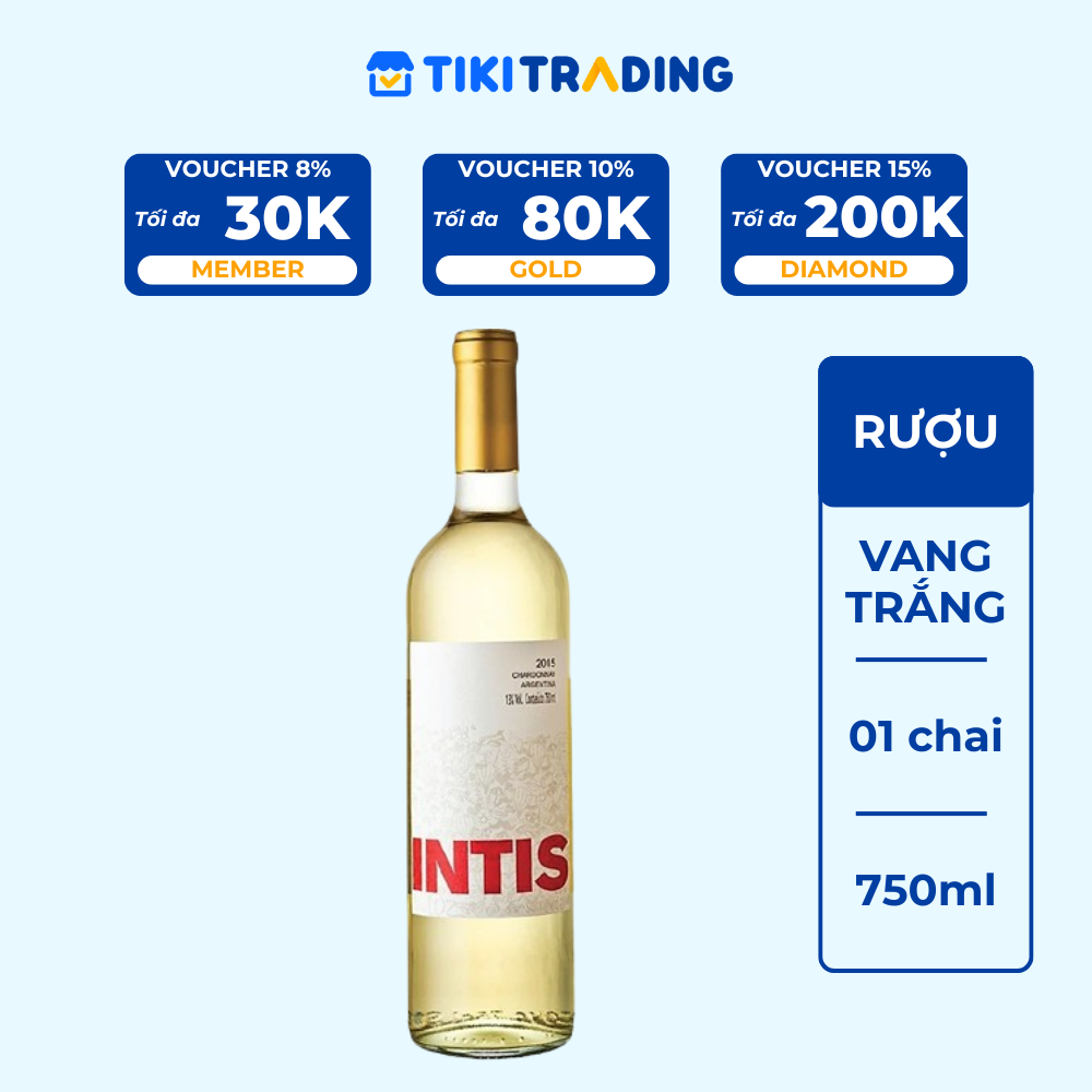 Thông số kỹ thuật Rượu vang trắng Argentina Intis Chardonnay Chenin 750ml 12% - 14% Không hộp