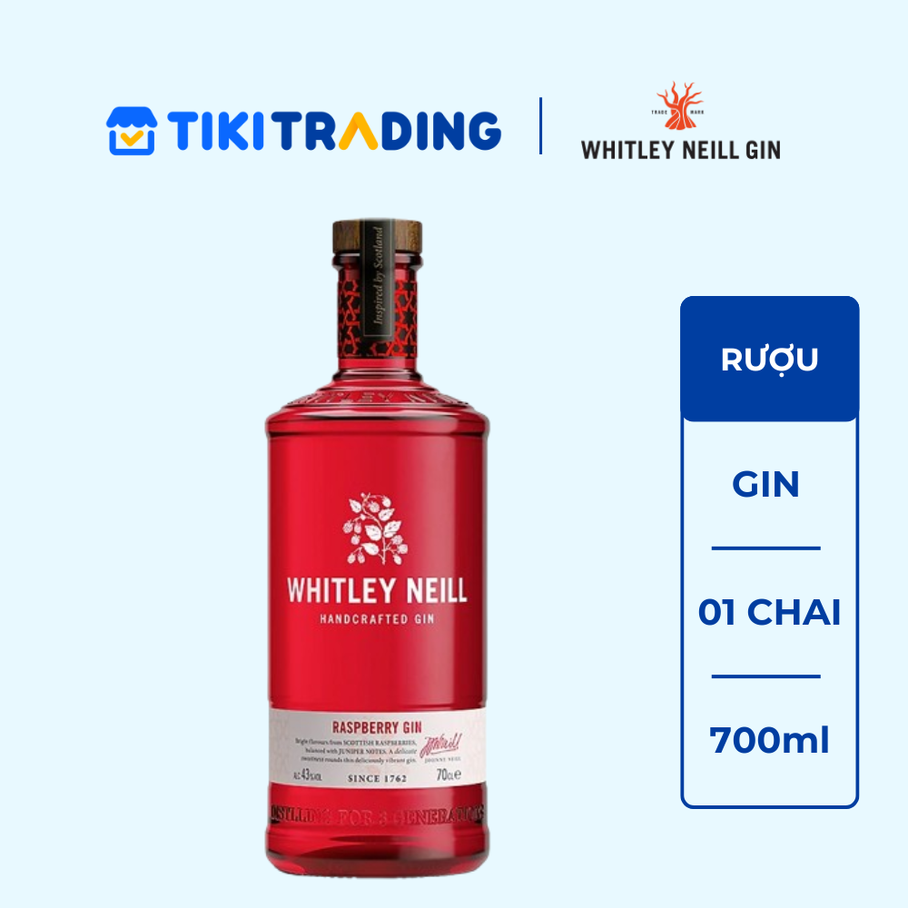 Thông số kỹ thuật Rượu Whitley Neill Handcrafted Raspberry Gin 43% (700ml) - Không hộp