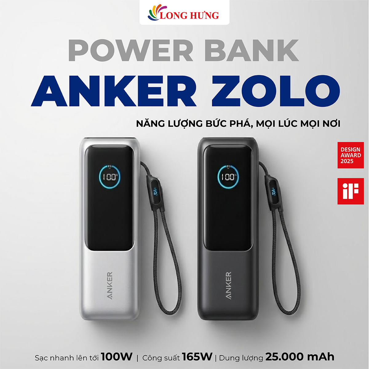 Thông số kỹ thuật Sạc dự phòng Anker Zolo Power Bank High-Power Multi Device USB-C 165W 25000mAh A1695 - Hàng chính hãng