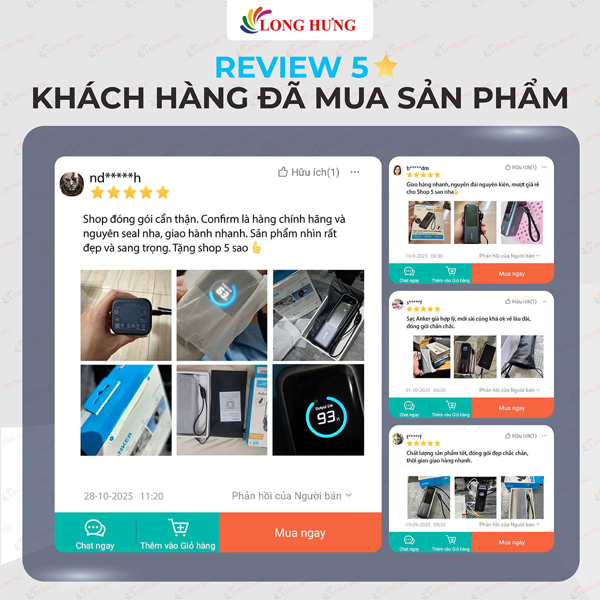 - Màn hình LED thông minh – Hiển thị % pin và công suất sạc ra vào theo thời gian thực