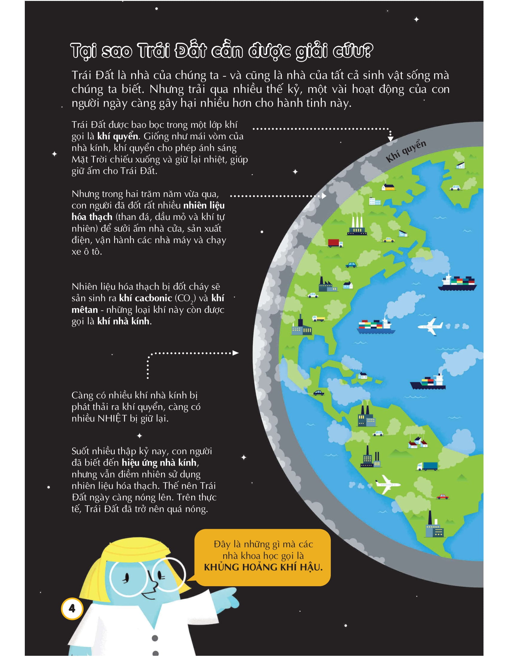 - Nội dung: giới thiệu tổng quan, và chi tiết về cách thức giải cứu Trái Đất, những hành động ảnh hưởng đến môi trường và sự kiện độc lạ khác. - Sách được gia công bìa cứng, tạo cảm giác cầm chắc tay, giấy chưa được in giấy bóng, hơi tiếc điểm này. - Giá: hơi cao so với các cuốn như lịch sử, khoa học, vũ trụ, thức ăn.