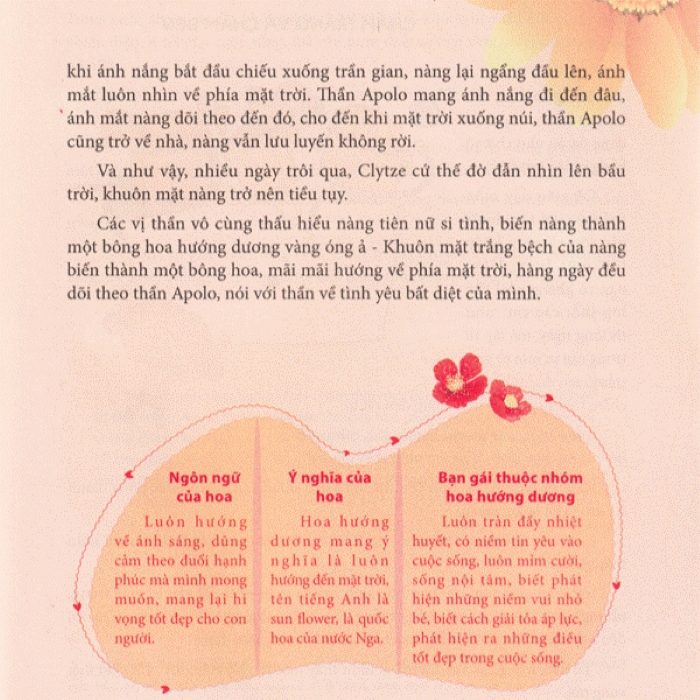- Cuốn sách trân trọng giới thiệu tới độc giả truyền thuyết về vẻ đẹp của 12 loài hoa cùng với 88 câu chuyện nhỏ liên quan. 100 câu chuyện trong tác phẩm chính là 100 món quà dành tặng các công chúa nhỏ. Hi vọng, sau khi đọc xong ấn phẩm này, các bạn gái cũng sẽ kiên cường, dũng cảm, lạc quan, lương thiện và phóng khoáng như những loài hoa… từng bước hướng đến sự hoàn mỹ.
