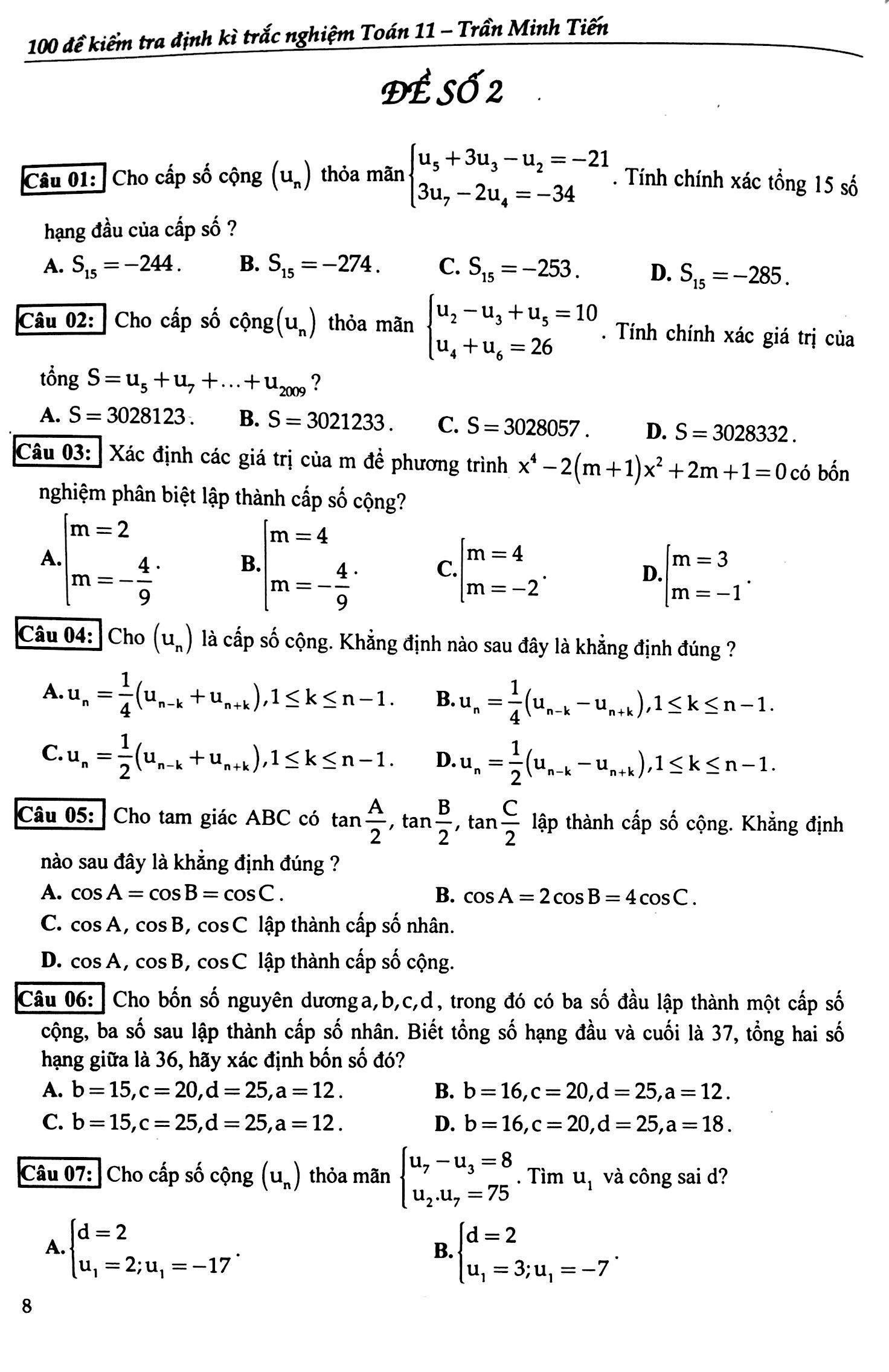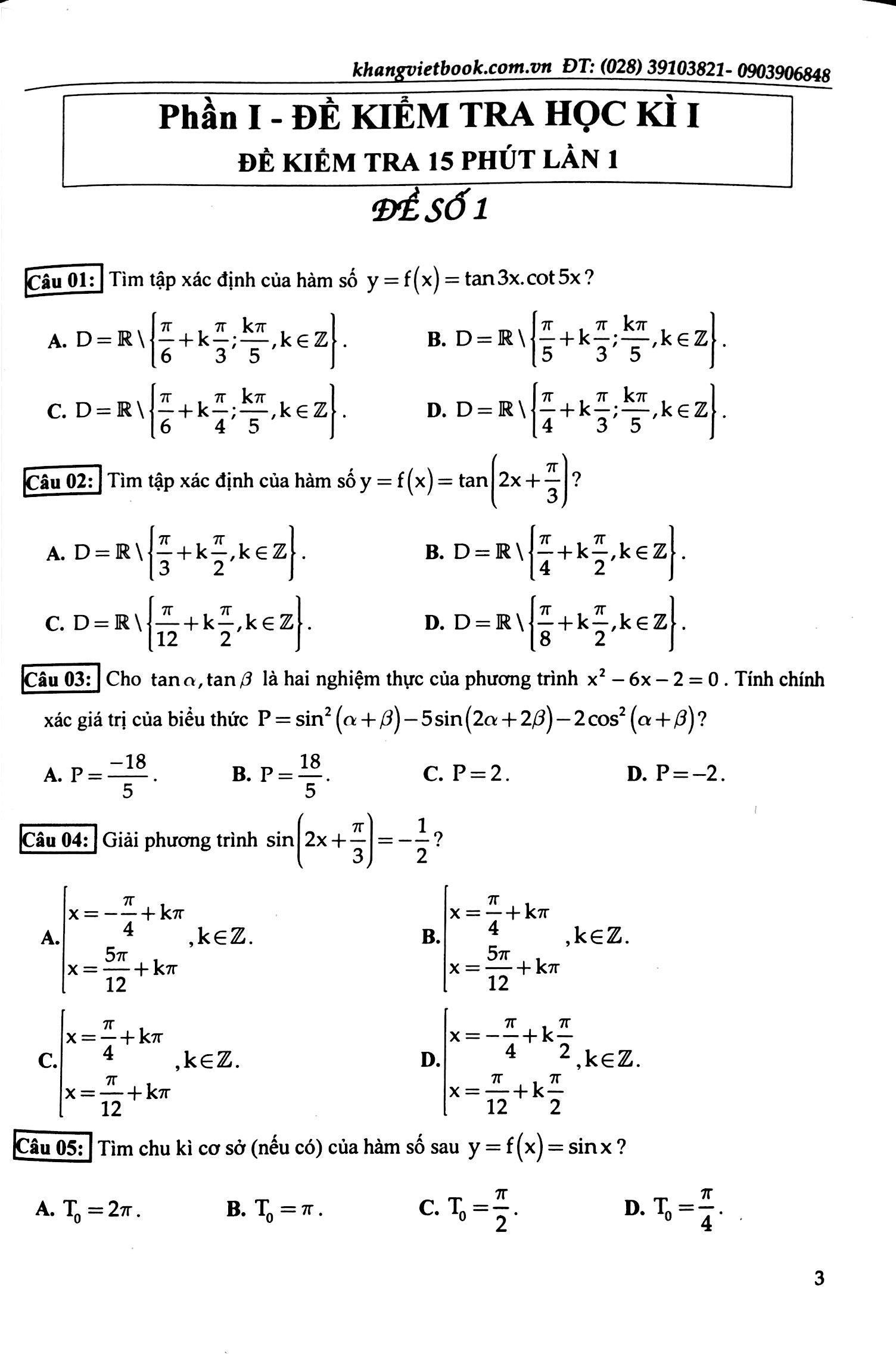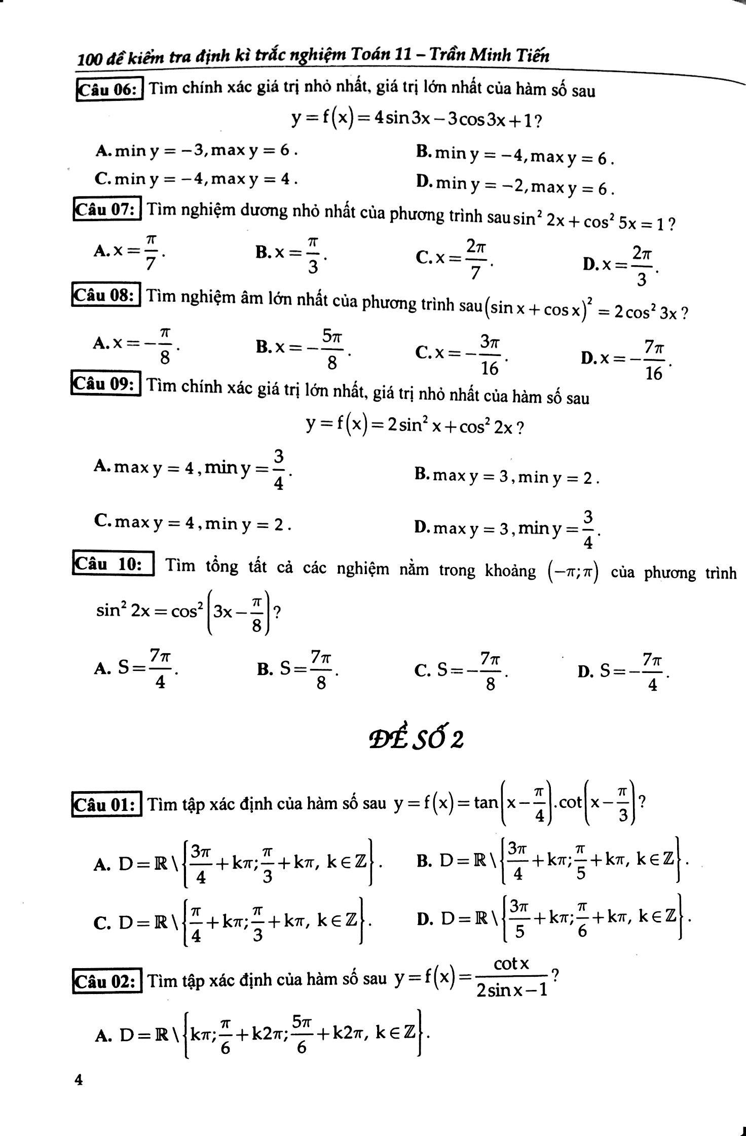100 Đề Kiểm Tra Định Kì Trắc Nghiệm Toán Lớp 11