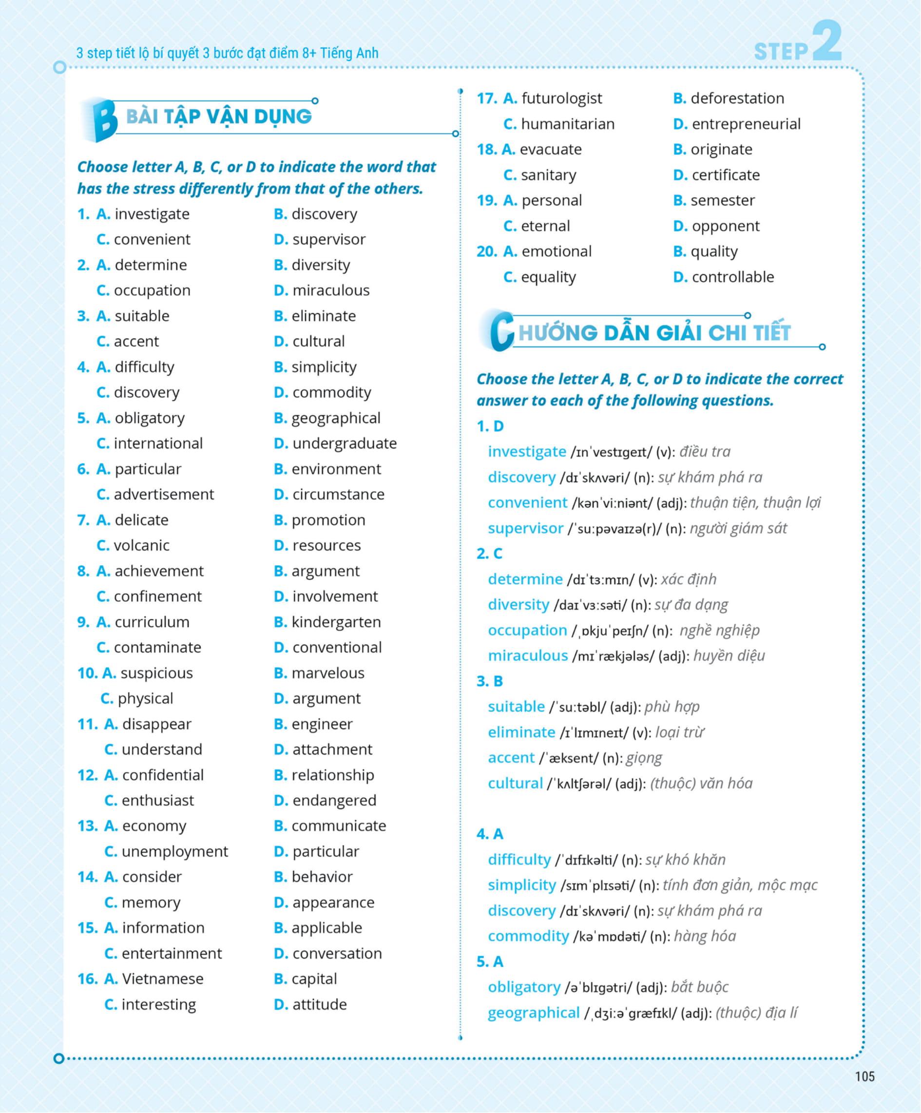 Lời giải chi tiết, giải thích đầy đủ các cấu trúc được vận dụng để các em hiểu bản chất, vững kiến thức và phương pháp tư duy.