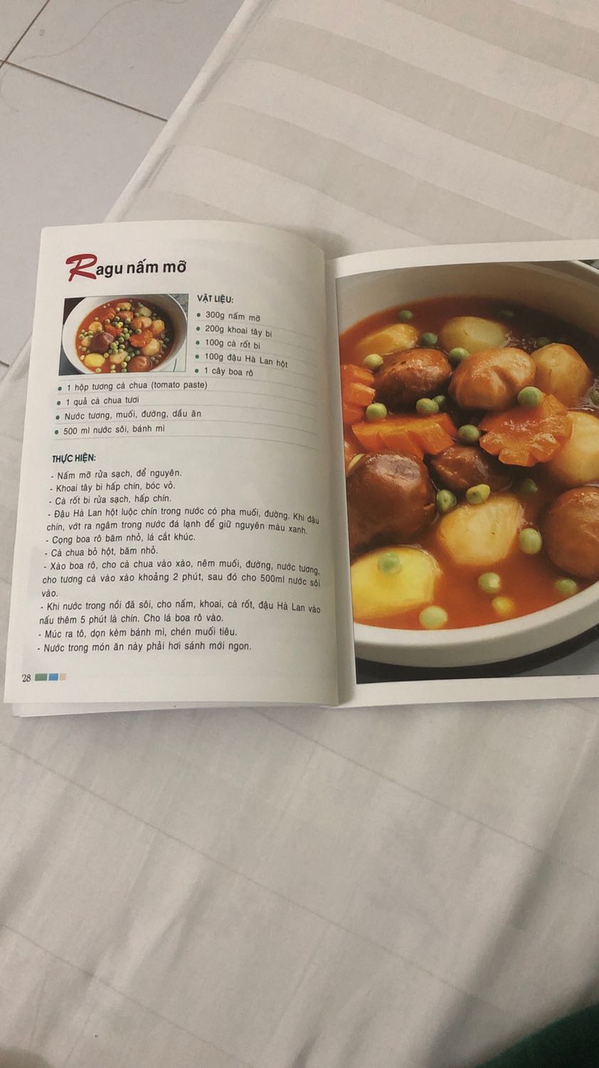 Sách in màu, trình bày đẹp. Mình biết cô Vân hướng dẫn nấu ăn trên tivi từ lúc còn nhỏ xíu, các món cô hướng dẫn thực hiện đơn giản dễ nấu mà trình bày cũng rất đẹp, rất hấp dẫn nhìn rất ngon đó nha.