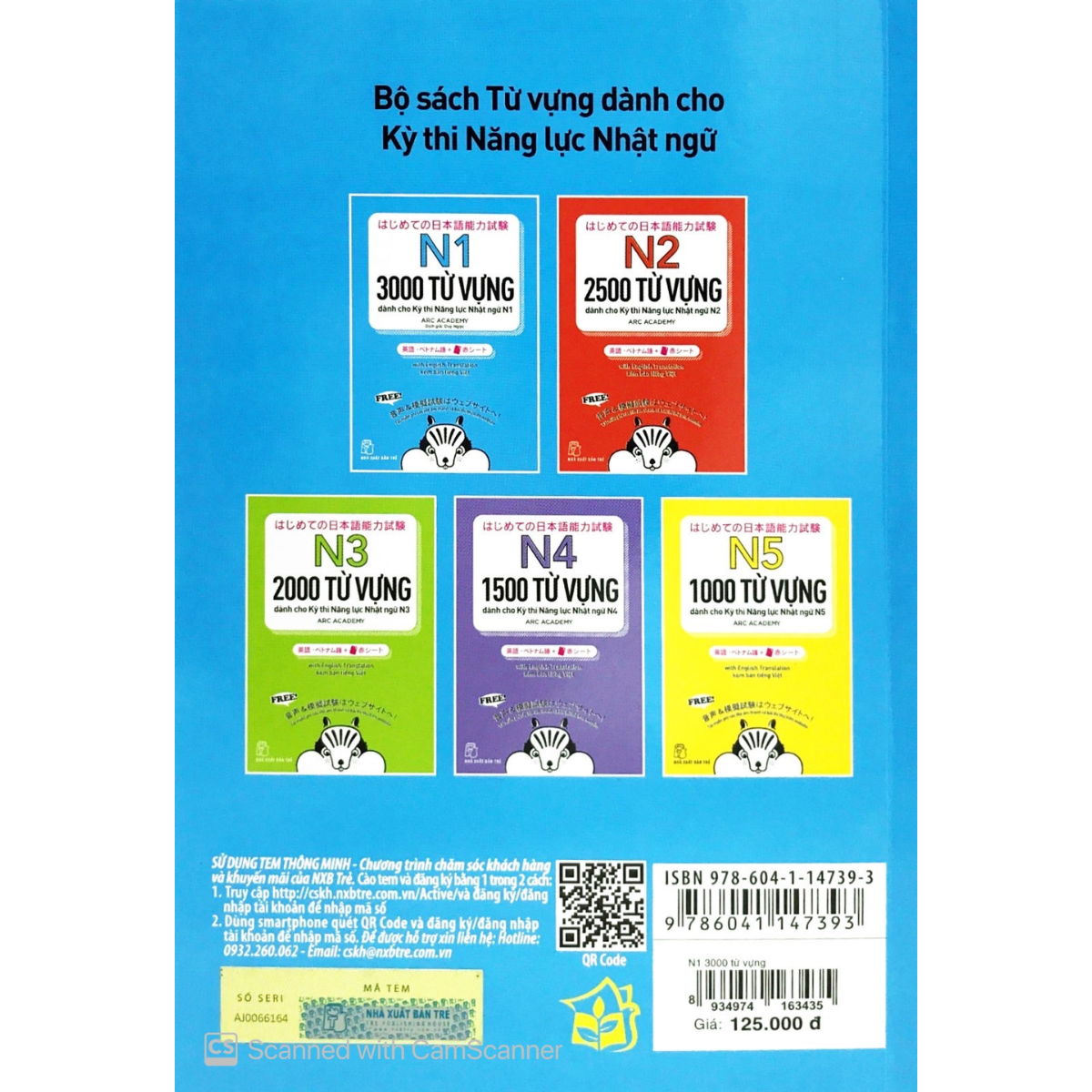Bộ sách học từ vựng cấp độ N5 ~ N1 dành cho Kỳ thi Năng lực Nhật ngữ. Bộ sách gồm 5 cuốn: N1, N2, N3, N4, N5, tập hợp các từ vựng xuất hiện thường xuyên trong các kỳ thi Năng lực Nhật ngữ. Các từ vựng này được chia theo từng chủ đề, đi kèm các câu ví dụ. Đặc biệt bộ sách có kèm theo bản dịch Anh - Trung - Việt, rất tiện cho các bạn tự học ở nhà.