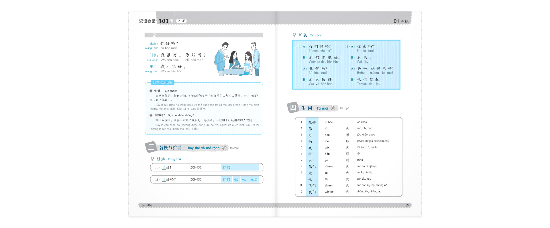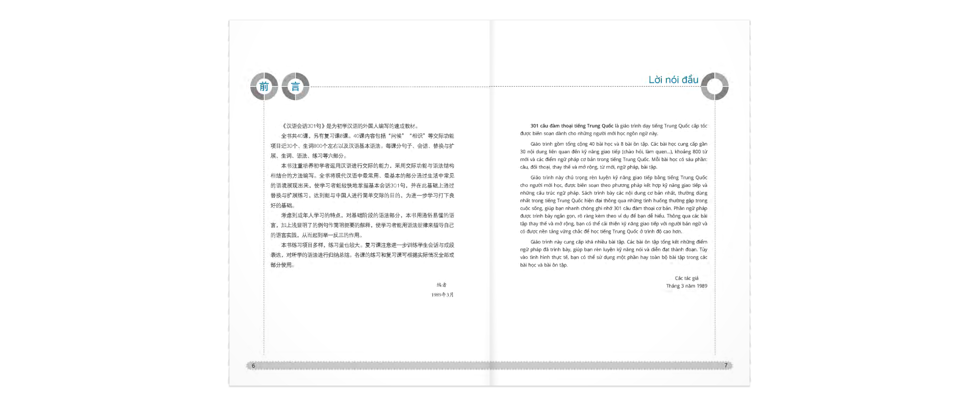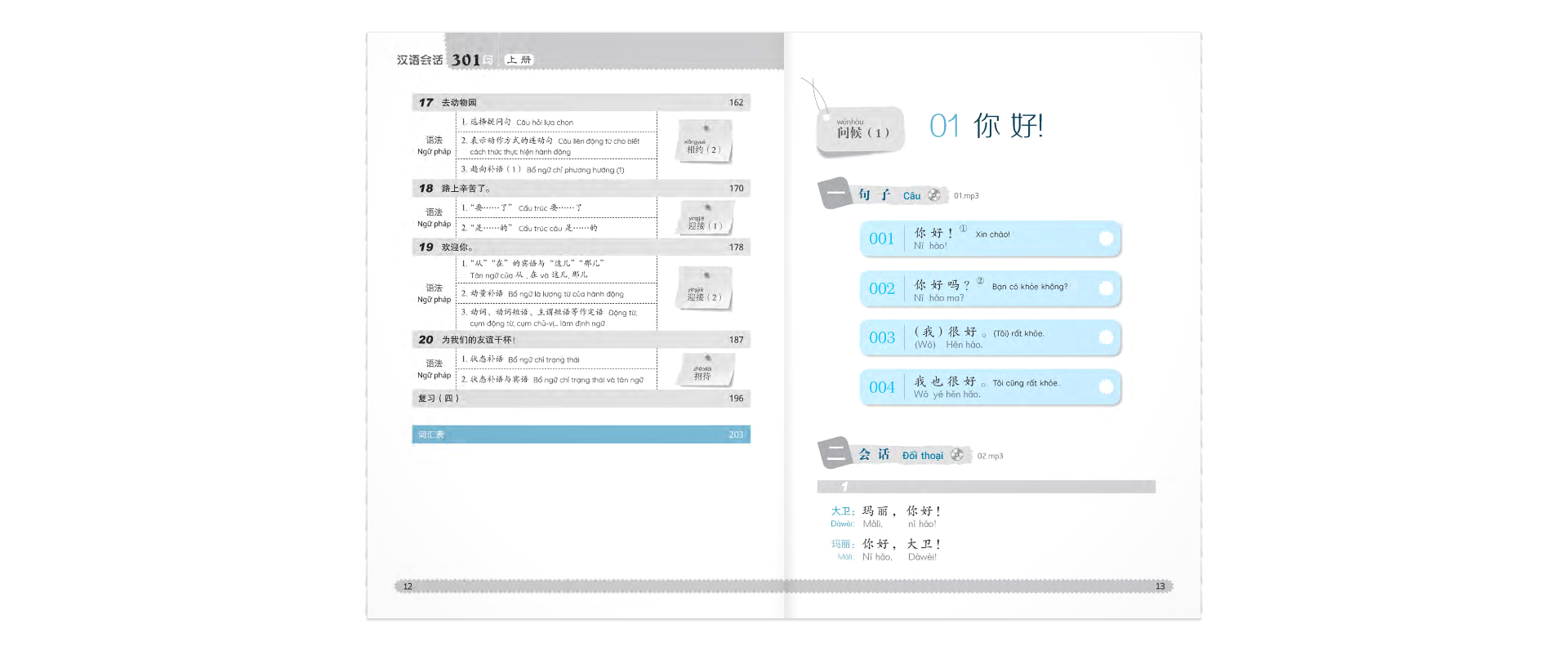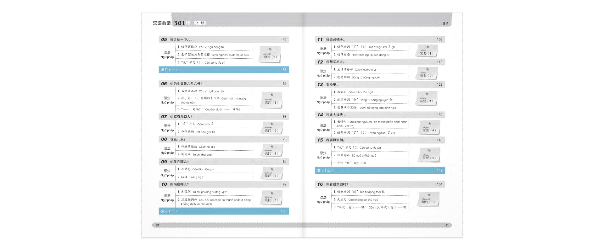 Giáo trình này chú trọng rèn luyện kỹ năng giao tiếp bằng tiếng Trung Quốc cho người mới học, được biên soạn theo phương pháp kết hợp kỹ năng giao tiếp và những cấu trúc ngữ pháp. Sách trình bày các nội dung cơ bản nhất, thường dùng nhất trong tiếng Trung Quốc hiện đại thông qua những tình huống thường gặp trong cuộc sống, giúp bạn nhanh chóng ghi nhớ 301 câu đàm thoại cơ bản. Phần ngữ pháp được trình bày ngắn gọn, rõ ràng kèm theo ví dụ để bạn dễ hiểu. Thông qua các bài tập thay thế và mở rộng, bạn có thể cải thiện kỹ năng giao tiếp với người bản ngữ và có được nền tảng vững chắc để học tiếng Trung Quốc ở trình độ cao hơn.