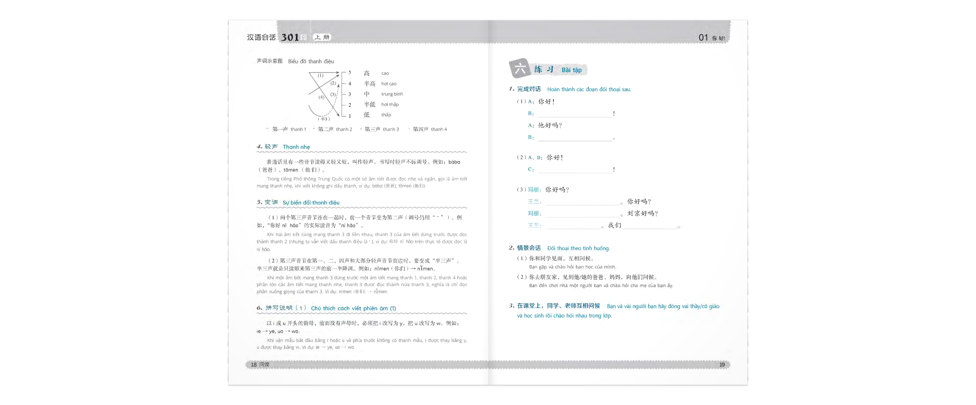 Giáo trình này cung cấp khá nhiều bài tập. Các bài ôn tập tổng kết những điểm ngữ pháp đã trình bày, giúp bạn rèn luyện kỹ năng nói và diễn đạt thành đoạn. Tùy vào tình hình thực tế, bạn có thể sử dụng một phần hay toàn bộ bài tập trong các bài học và bài ôn tập.
