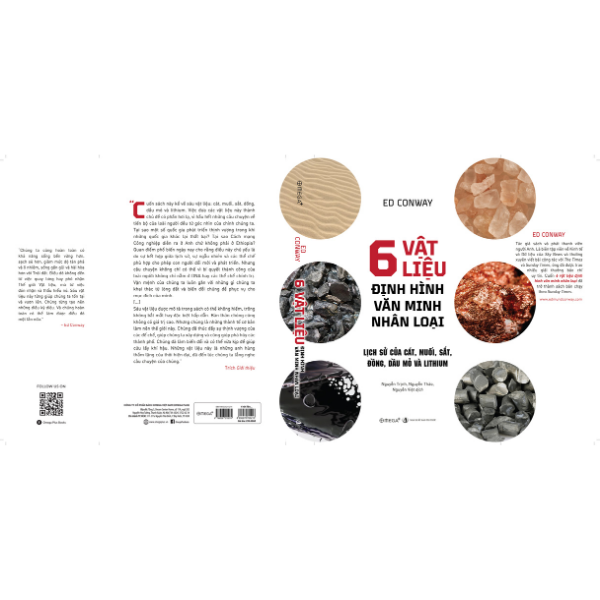“6 vật liệu định hình văn minh nhân loại” - Lịch sử, hiện tại và tương lai nhân loại qua lăng kính cát, muối, sắt, đồng, dầu và lithium.Trong lịch sử loài người, người ta thường kể về các vị vua, những nhà tư tưởng, các cuộc cách mạng hay hệ thống thể chế chính trị. Nhưng Ed Conway – nhà báo kinh tế kỳ cựu của Sky News – lại chọn một cách nhìn hoàn toàn khác trong cuốn sách “6 vật liệu định hình văn minh nhân loại: Lịch sử của cát, muối, sắt, đồng, dầu mỏ và lithium”. Thay vì đặt con người ở trung tâm, ông kể lại lịch sử từ góc nhìn của sáu vật liệu tưởng chừng bình thường nhưng thực ra là nền móng của toàn bộ văn minh nhân loại. Cuốn sách từng được đề cử giải Sách phi hư cấu của Viện Hàn lâm Anh năm 2004.