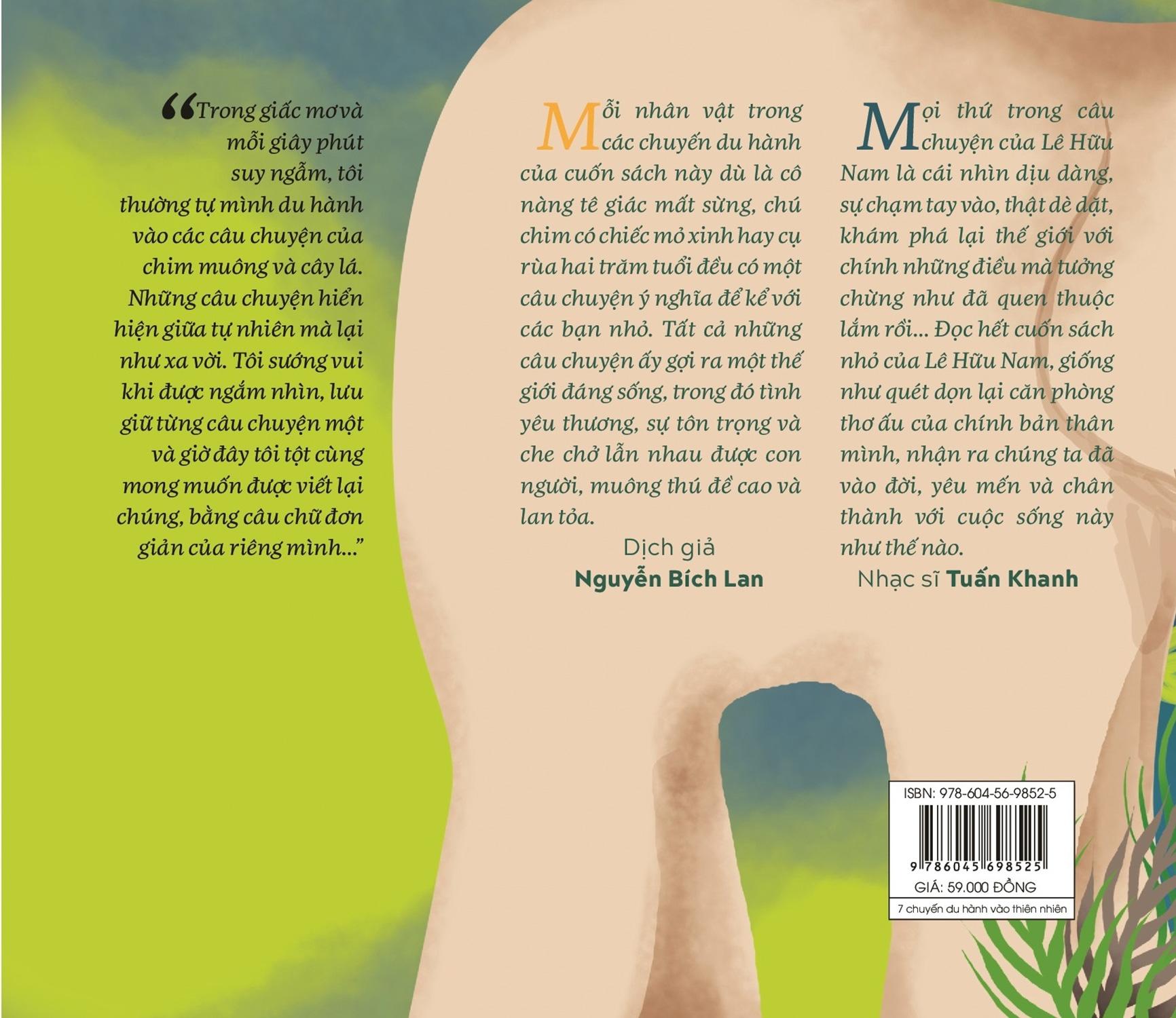 7 chuyến du hành vào thiên nhiên là tên của cuốn sách kể về thiên nhiên và động vật dành cho thiếu nhi được tác giả Lê Hữu Nam sáng tác dựa trên những câu chuyện có thật. Bảy câu chuyện trong cuốn sách là bảy cuộc hành trình vào thế giới thiên nhiên xanh ngát và trong trẻo, được viết bằng một tấm lòng chân thành với mong muốn trao cho bạn đọc nhỏ tuổi những điều tốt đẹp nhất.