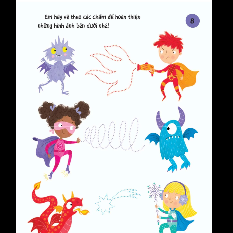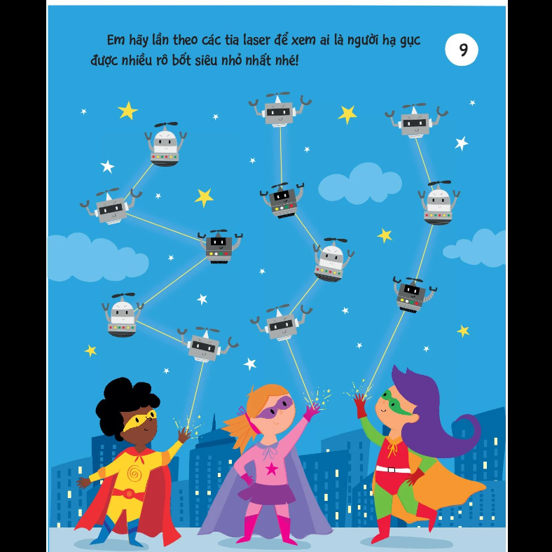 - Cuốn sách "90++ Trò Chơi Phát Triển Chỉ Số IQ Cho Bé - Các Siêu Anh Hùng" là một tập hợp hơn 90 hoạt động thú vị giúp trẻ em phát triển trí thông minh và các kỹ năng quan trọng. Các trò chơi bao gồm tìm đường qua mê cung, phát hiện sự khác biệt giữa hai bức tranh, tìm từ ẩn trong ô chữ, và hoàn thiện những bức vẽ dang dở. Những hoạt động này không chỉ rèn luyện khả năng quan sát, tư duy logic, tưởng tượng mà còn phát triển kỹ năng đọc, viết, đếm số, so sánh, vẽ và tô màu cho trẻ