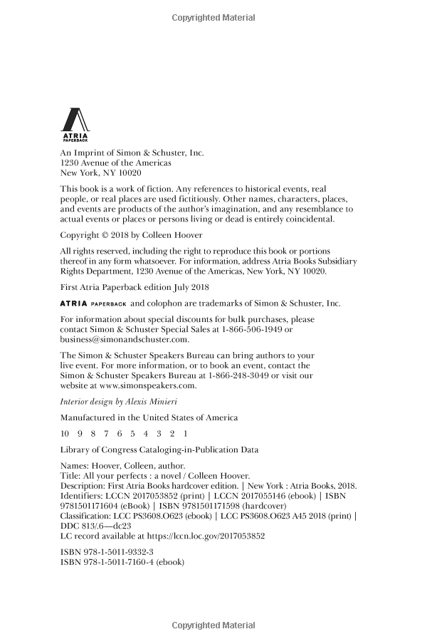 All Your Perfects is a profound novel about a damaged couple whose potential future hinges on promises made in the past. This is a heartbreaking page-turner that asks: Can a resounding love with a perfect beginning survive a lifetime between two imperfect people?