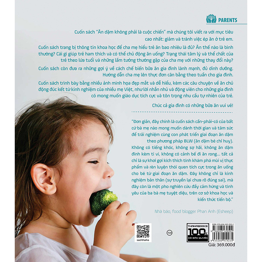- Cuốn sách còn là tổng hợp những lời tâm sự của nhiều ông bố, bà mẹ trên khắp mọi miền đất nước Việt Nam đã áp dụng cách cho bé ăn uống chủ động và tích cực: những kinh nghiệm áp dụng và biến hoá theo từng gia đình, những khó khăn và thành công của quá trình kiên trì và tôn trọng nhu cầu của trẻ.