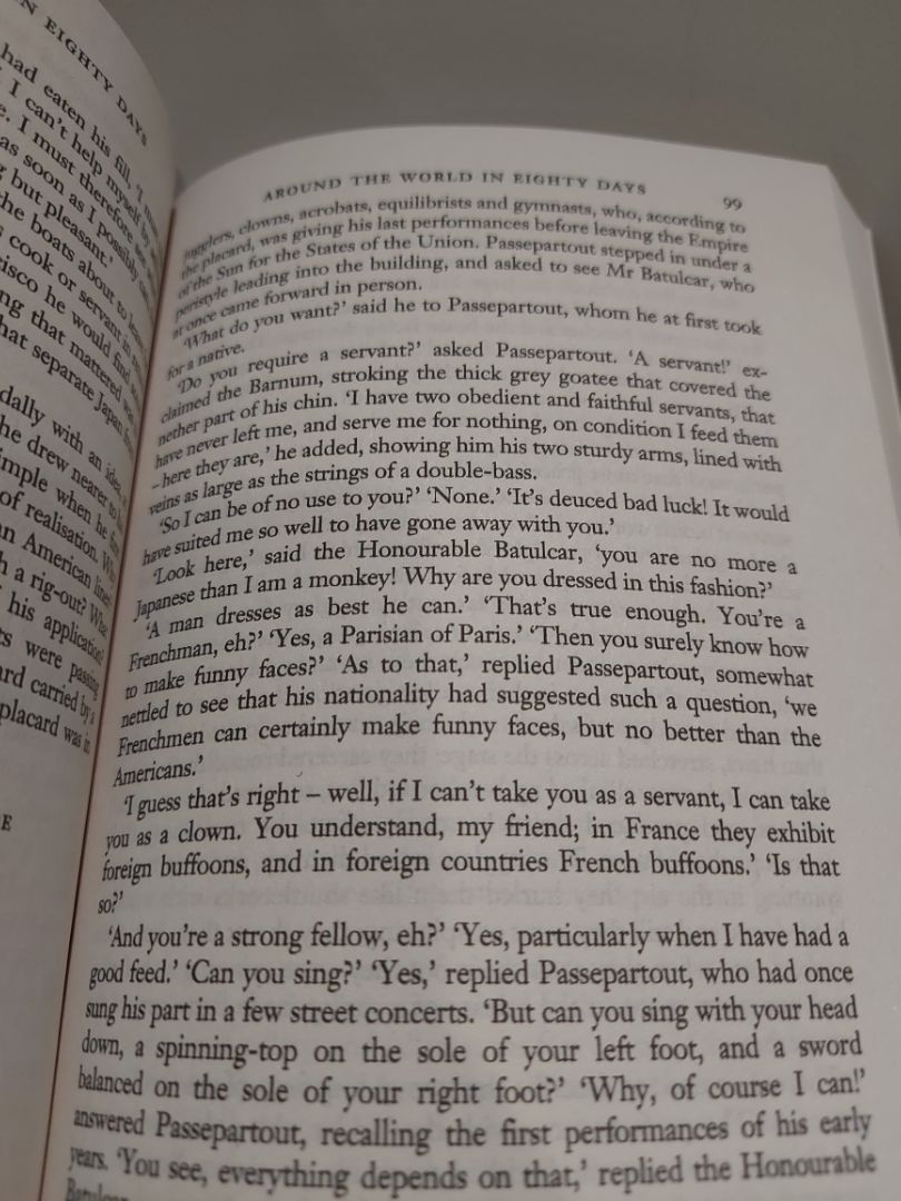 Around the World in Eighty Days (1873) relates the hair-raising journey made as a wager by the Victorian gentleman Phileas Fogg, who succeeds - but only just! - in circling the globe within eighty days. The dour Fogg's obsession with his timetable is complemented by the dynamism.