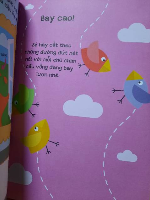 - Hãy bắt đầu bằng cách đồng hành cùng con để khám phá cuốn sách này. Hãy đọc các từ lên và trò chuyện về những bức tranh, sau đó khuyến khích trẻ hoàn thành từng hoạt động một. Có rất nhiều bức tranh để trẻ cắt ra bằng cách cắt theo những đường thẳng đứng, đường ngang và đường cong – tất cả các hoạt động này đều giúp trẻ phát triển những kỹ năng vận động quan trọng để chuẩn bị tập viết. Khi thấy một đường đứt nét nghĩa là trẻ có thể cắt theo đó để hoàn thành hoạt động. Các bạn nhỏ sẽ sớm phát triển được sự tự tin để tự khám phá một mình!