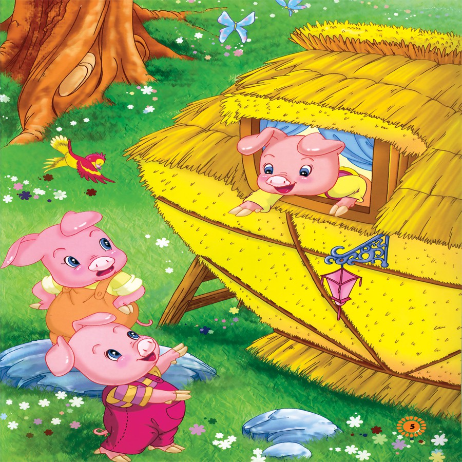 - Ba chú lợn con rời nhà mẹ và tự xây dựng ngôi nhà của riêng mình. Mỗi chú lợn chọn một vật liệu khác nhau để xây nhà. Khi sói đến và thổi bay hai ngôi nhà đầu tiên, hai chú lợn đầu tiên chạy đến nhà của chú lợn thứ ba. Sói không thể thổi đổ ngôi nhà bằng gạch, và cuối cùng bị đánh bại.