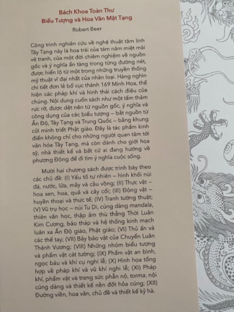 GIỚI THIỆU TÁC GIẢ: Robert Beer, họa sỹ người Anh, sinh năm 1947 tại Cardiff, miền Nam xứ Wales. Trải qua nhiều nghịch cảnh như mù màu và “cú sốc Hỏa Hầu” đầy sóng gió, được chèo lái bởi niềm đam mê nghệ thuật và minh triết phương Đông, ông đã thâm nhập vô cùng sâu sắc vào địa hạt mỹ thuật thangka ở Ấn Độ và Nepal, theo học với một số họa sỹ Tây Tạng lừng danh nhất thời bấy giờ. Năm 1975, ông trở về sống ở London và miệt mài phát triển tay nghề, linh kiến, đức kiên trì và sự hiểu biết về chủ đề vô cùng phức tạp này, cũng như về ngữ cảnh lịch sử và văn hóa được nội hàm trong đó. Suốt gần 40 năm qua, những thiết kế tinh tế của ông đã tô điểm cho vô số ấn phẩm và hiện vật tâm linh, góp phần định hình nghệ thuật Tây Tạng và Nepal đương đại. Không dừng lại ở đó, sự cống hiến của ông còn vượt ra ngoài lĩnh vực nghệ thuật - ông trở thành người bảo trợ và cố vấn cho các họa sỹ tài năng ở Thung lũng Kathmandu, cùng họ chung tay bảo tồn di sản văn hóa và truyền thống đồ sộ nơi đây.