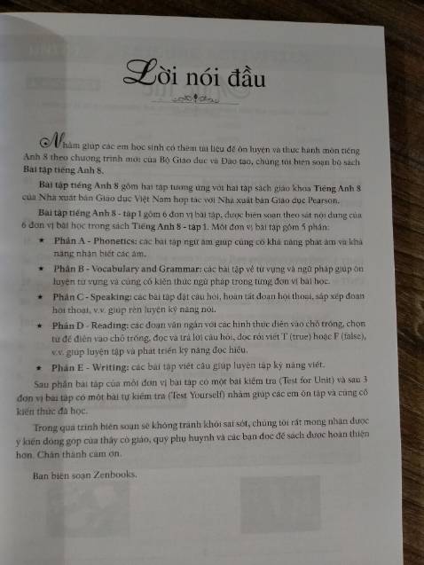 Nhằm giúp các em học sinh có thêm tài liệu để ôn luyện và thực hành môn tiếng Anh 8 theo chương trình mới của Bộ Giáo dục và Đào tạo, chúng tôi biên soạn bộ sách Bài tập tiếng Anh 8.