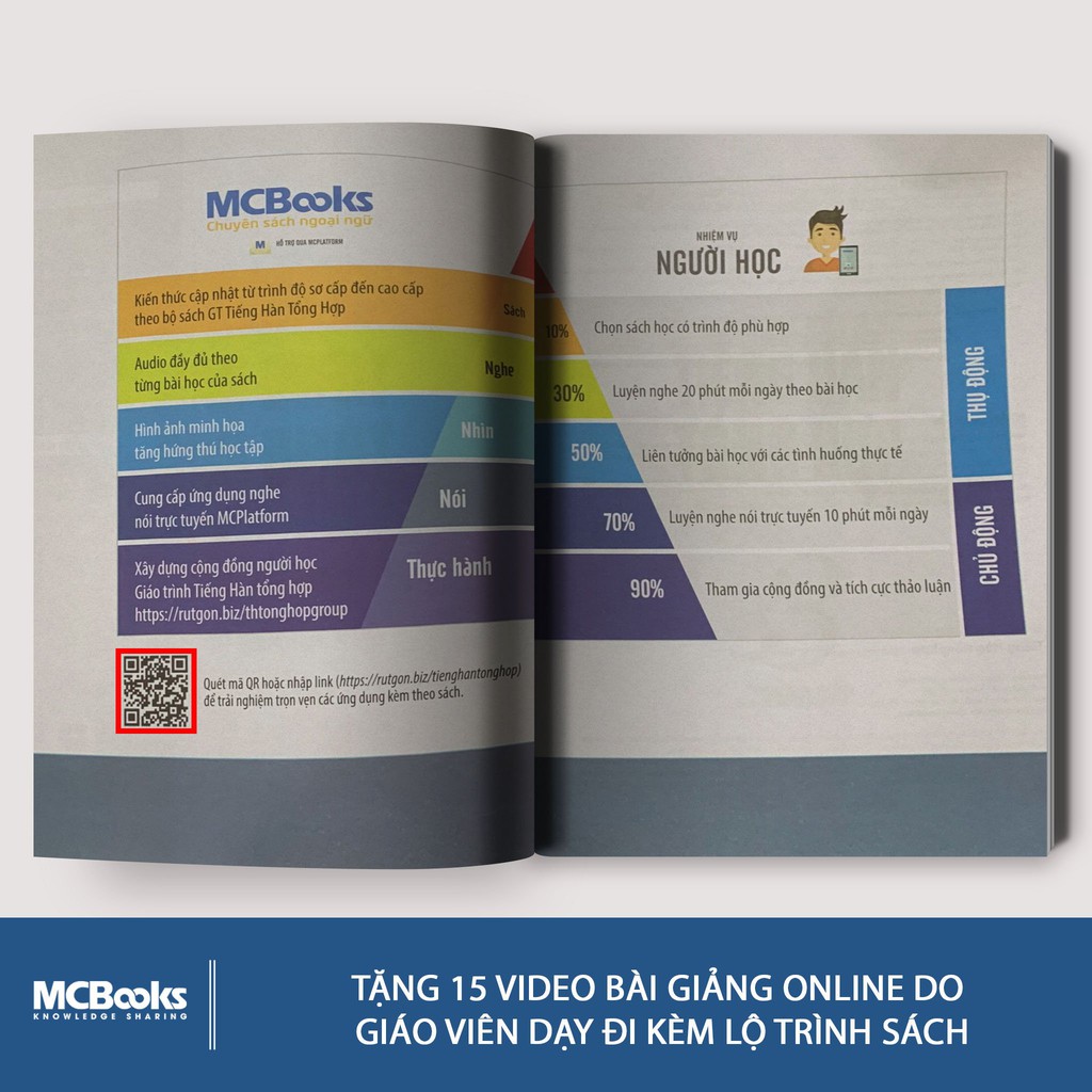 Dựa trên nhu cầu của người học cùng với sự phát triển của công nghệ thông tin trong thời đại 4.0, bài tập Tiếng Hàn tổng hợp đã được tích hợp trên App MCPlatform của Mcbooks. Người học có thể ôn tập luyện tập mọi lúc mọi nơi chỉ với chiếc điện thoại di động của mình.