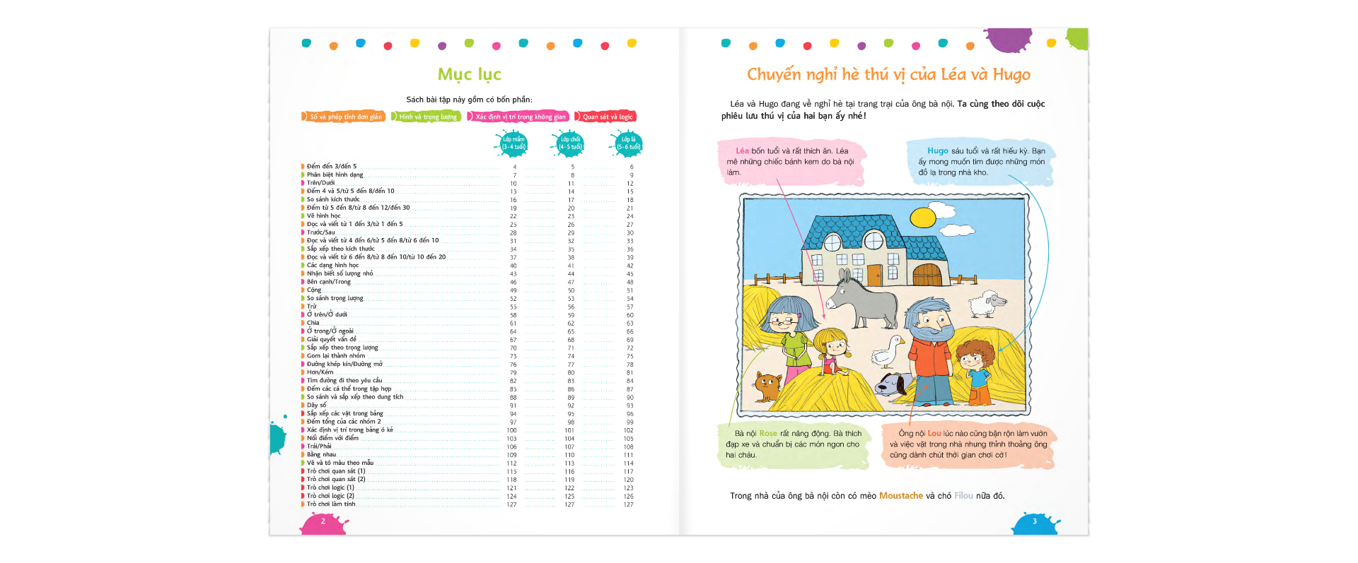 Với 200 trò chơi và hoạt động trong quyển sách này, trẻ không chỉ được học, được chơi một cách đầy hứng thú mà còn có cơ hội làm quen với những con số và phép tính sơ đẳng. Những hoạt động vui tươi dưới nhiều hình thức khác nhau (tô màu, sắp xếp đồ vật, tìm đường đi trong mê cung…) giúp trẻ dễ dàng tiếp thu nội dung môn toán ở trường mẫu giáo:
