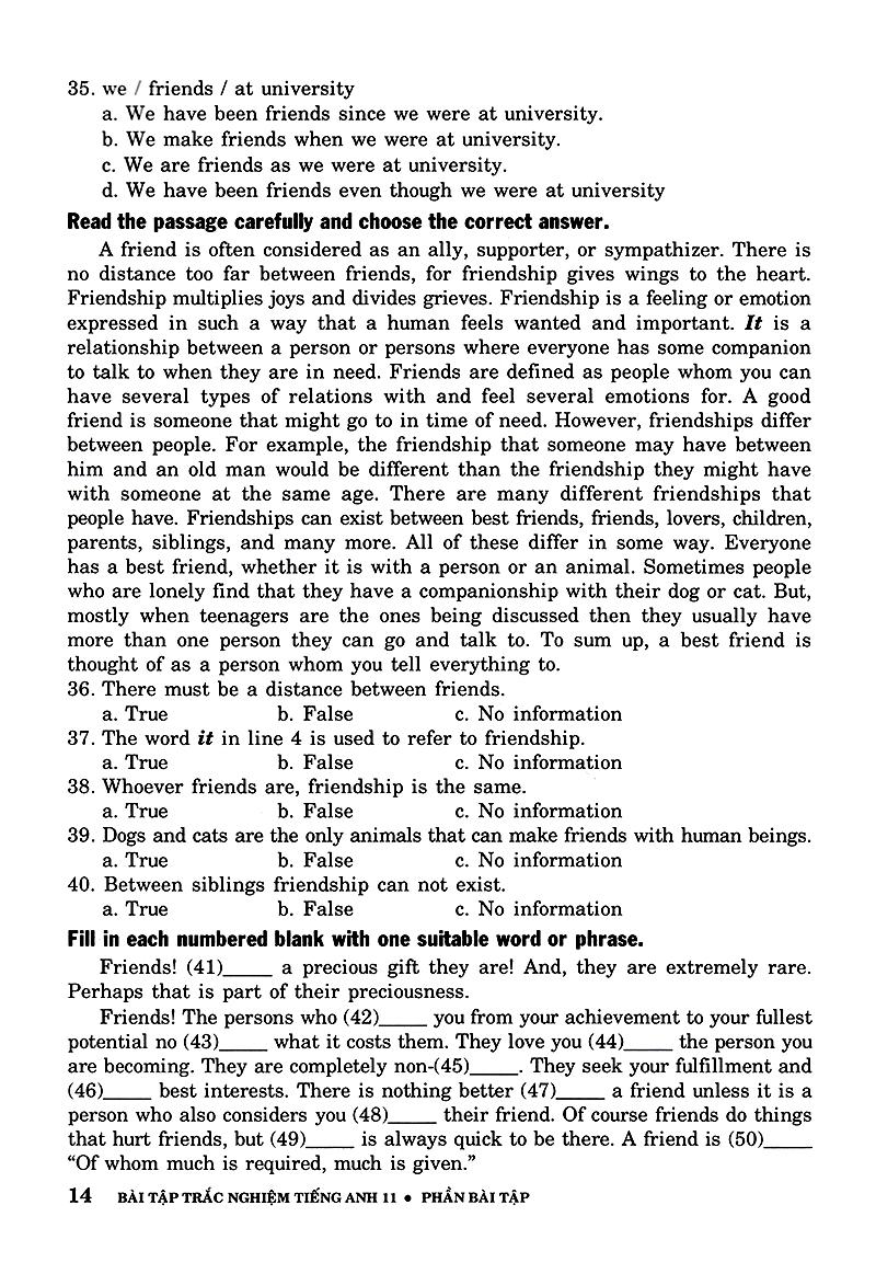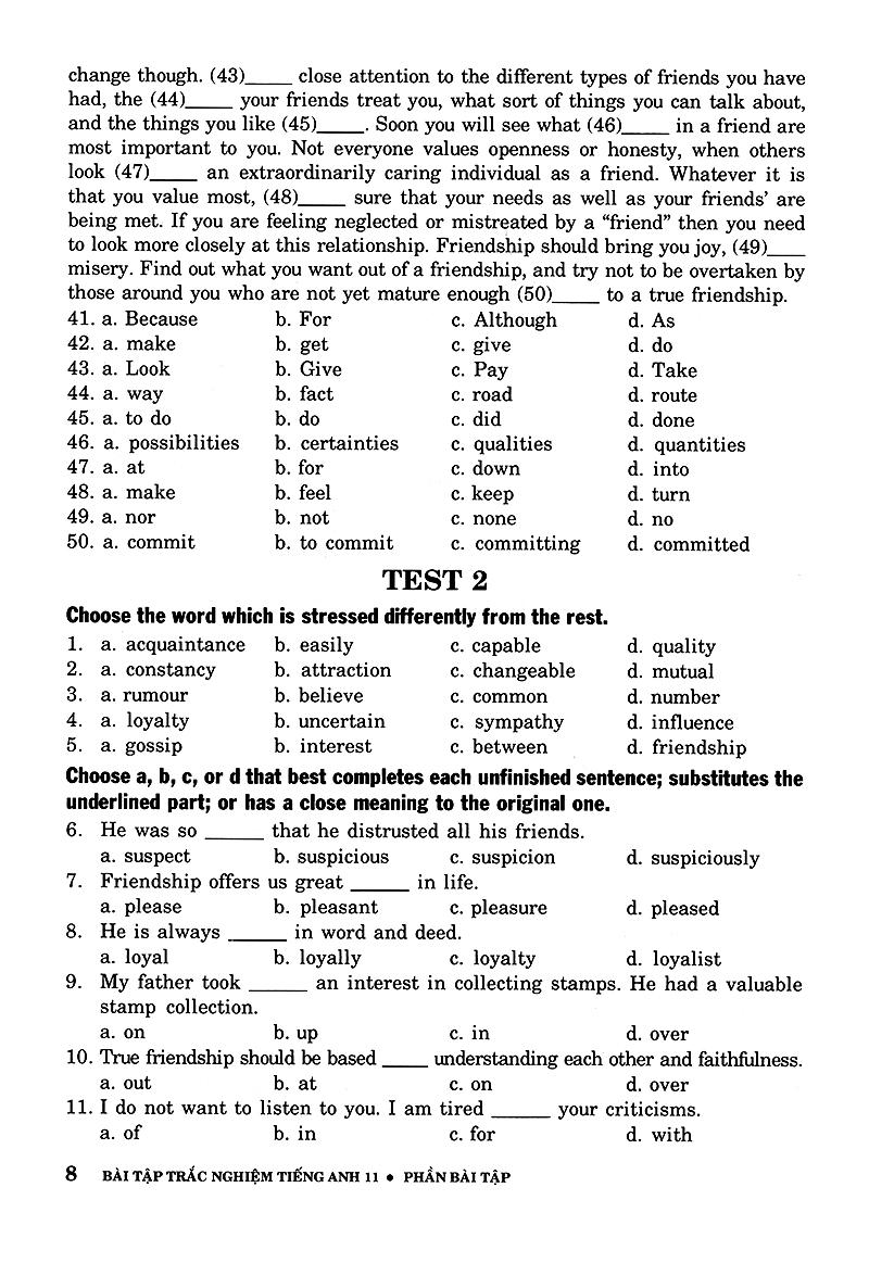 Bài Tập Trắc Nghiệm Tiếng Anh 11 được biên soạn theo sách giáo khoa Tiếng Anh 11 của Bộ Giáo dục và Đào tạo.
