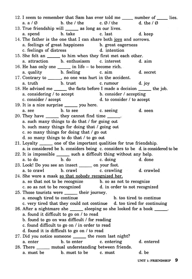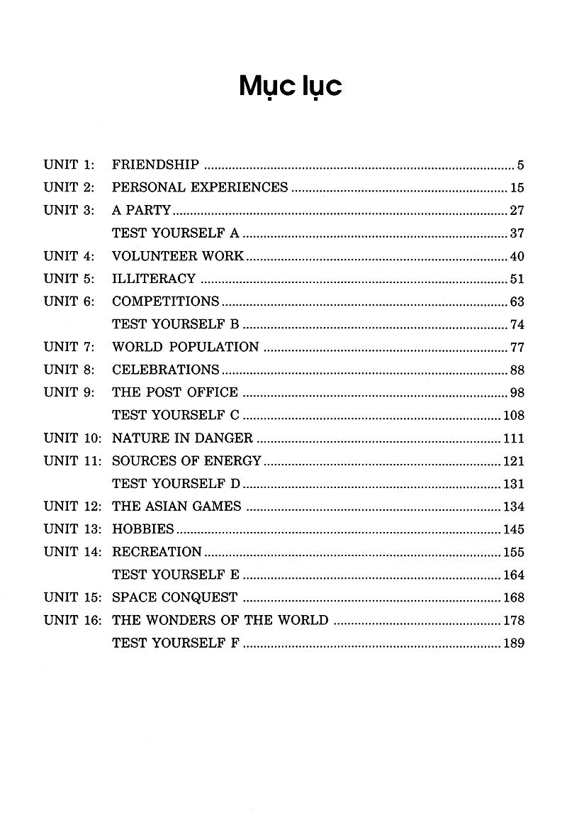 Bài Tập Trắc Nghiệm Tiếng Anh 11 gồm 16 đơn vị bài học (Unit). Mỗi đơn vị bài học có 3 TEST, mỗi TEST gồm 50 câu, có nội dung tương ứng với đơn vị bài học trong sách giáo khoa. Sau 2 hoặc 3 đơn vị bài học có một bài tự kiểm tra (TEST YOURSELF) được soạn như bài kiểm tra một tiết nhằm giúp các em ôn luyện và củng cố kiến thức đã học.