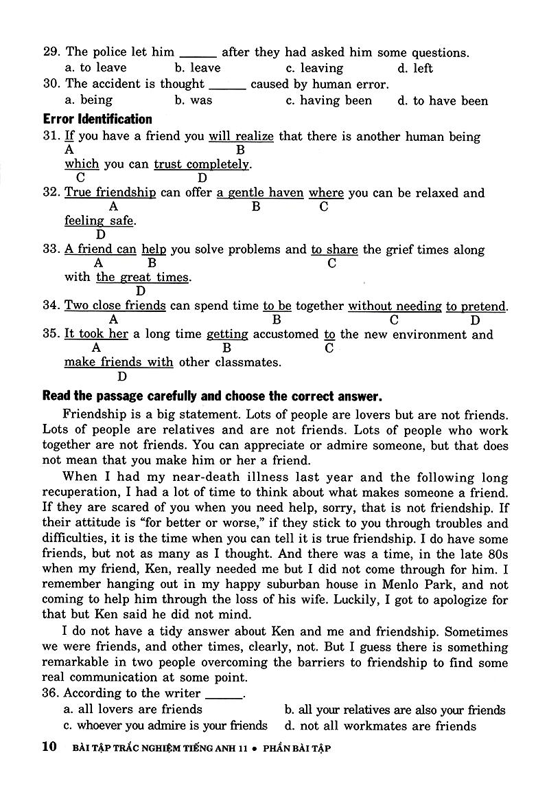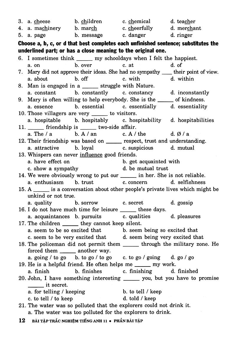 Bài Tập Trắc Nghiệm Tiếng Anh 11 (Không Đáp Án)