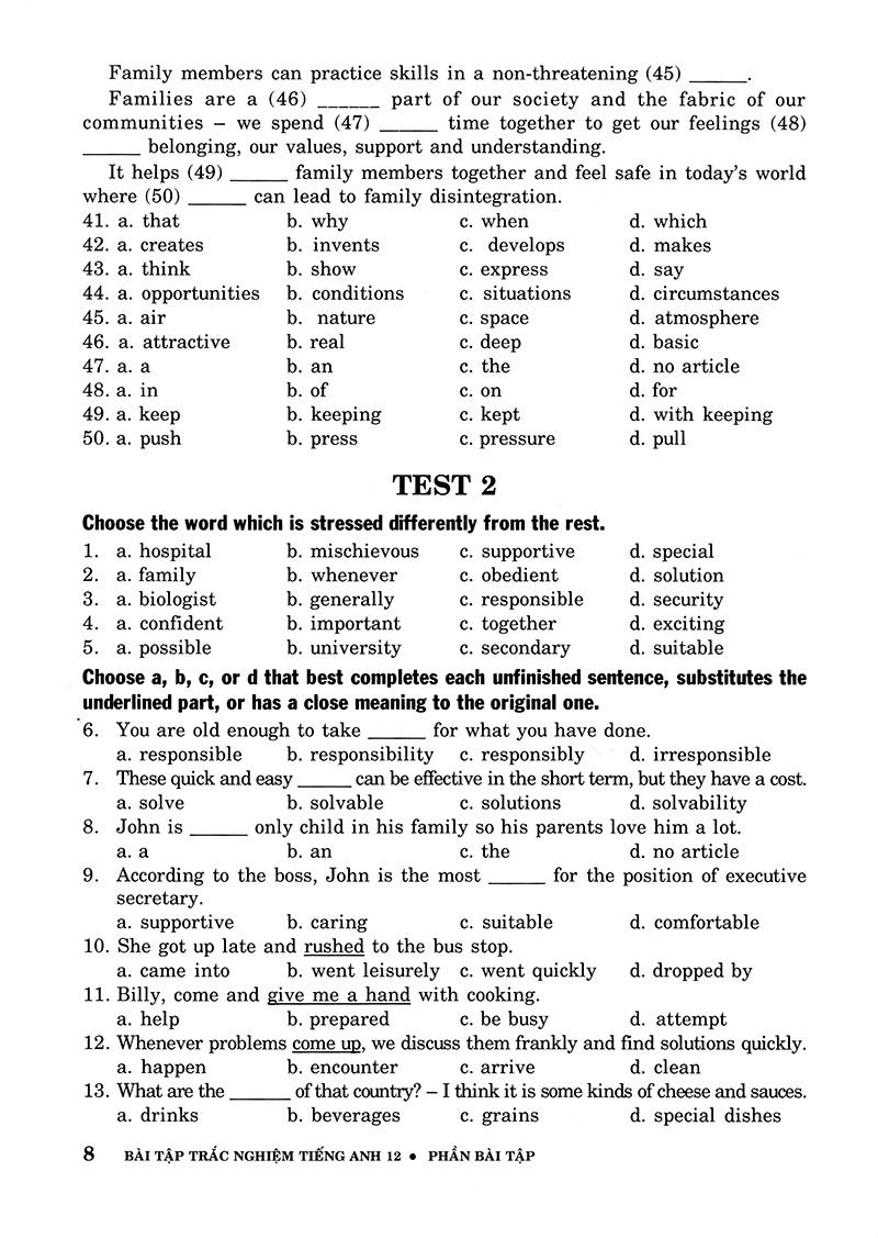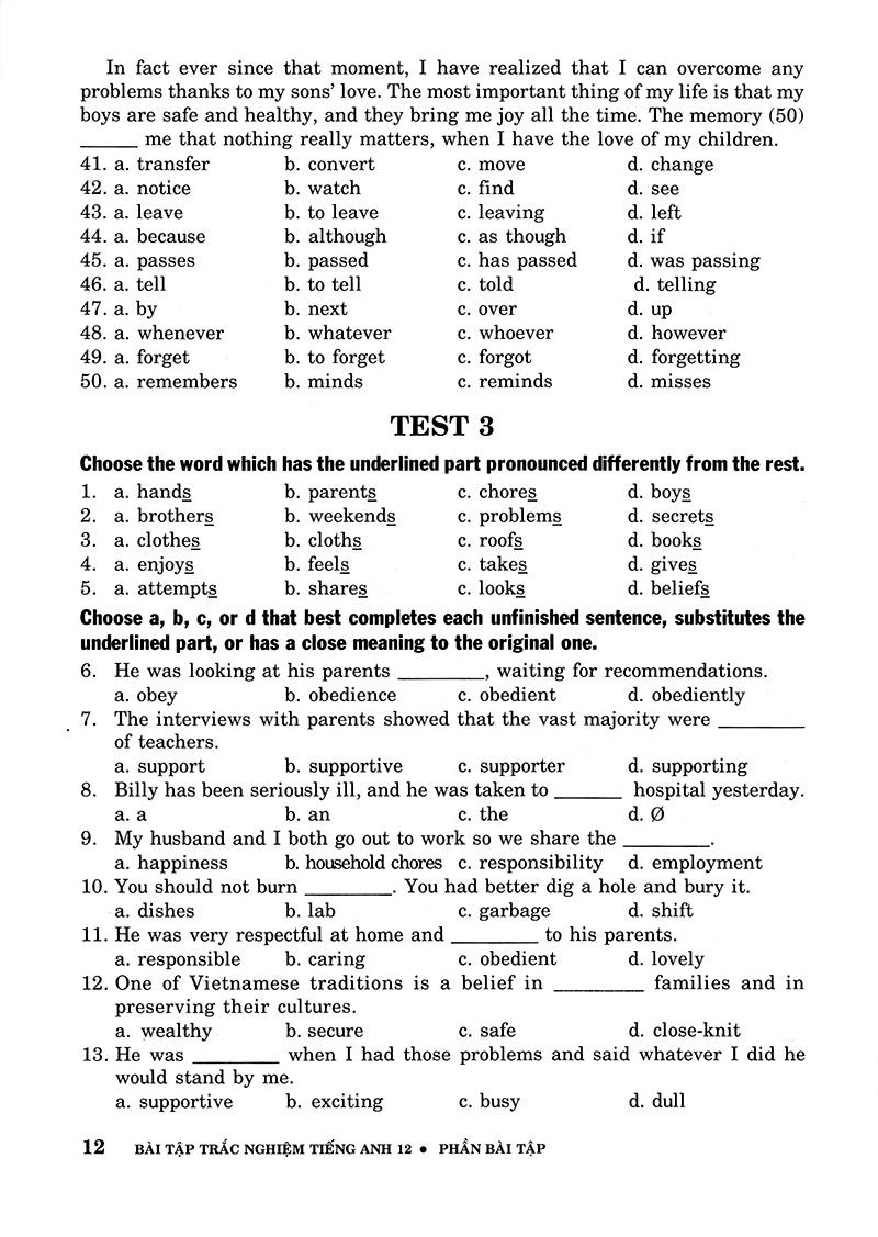 Bài Tập Trắc Nghiệm Tiếng Anh 12 được biên soạn theo sách giáo khoa Tiếng Anh 12 của Bộ Giáo dục và Đào tạo.