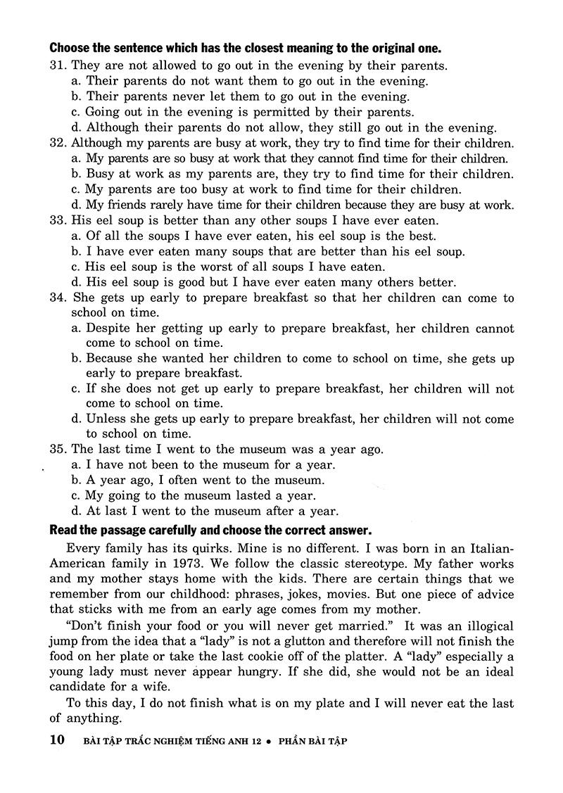 Zenbooks hy vọng Bài Tập Trắc Nghiệm Tiếng Anh Lớp 12 sẽ là quyển sách thiết thực, đáp ứng được yêu cầu ôn luyện và kiểm tra kiến thức bằng hình thức trắc nghiệm cho học sinh lớp 12.