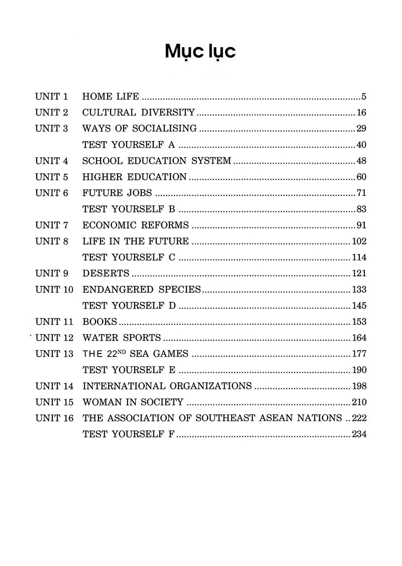 Bài Tập Trắc Nghiệm Tiếng Anh 12 gồm 16 đơn vị bài học (Unit). Mỗi đơn vị bài học có 3 TEST, mỗi TEST gồm 50 câu, có nội dung tương ứng với đơn vị bài học trong sách giáo khoa. Sau 2 hoặc 3 đơn vị bài học có một bài tự kiểm tra (TEST YOURSELF), gồm 2 TEST, nhằm giúp các em ôn luyện và củng cố kiến thức đã học. Cuối sách là 2 đề thi tốt nghiệp trung học phổ thông năm 2015 và 2016.