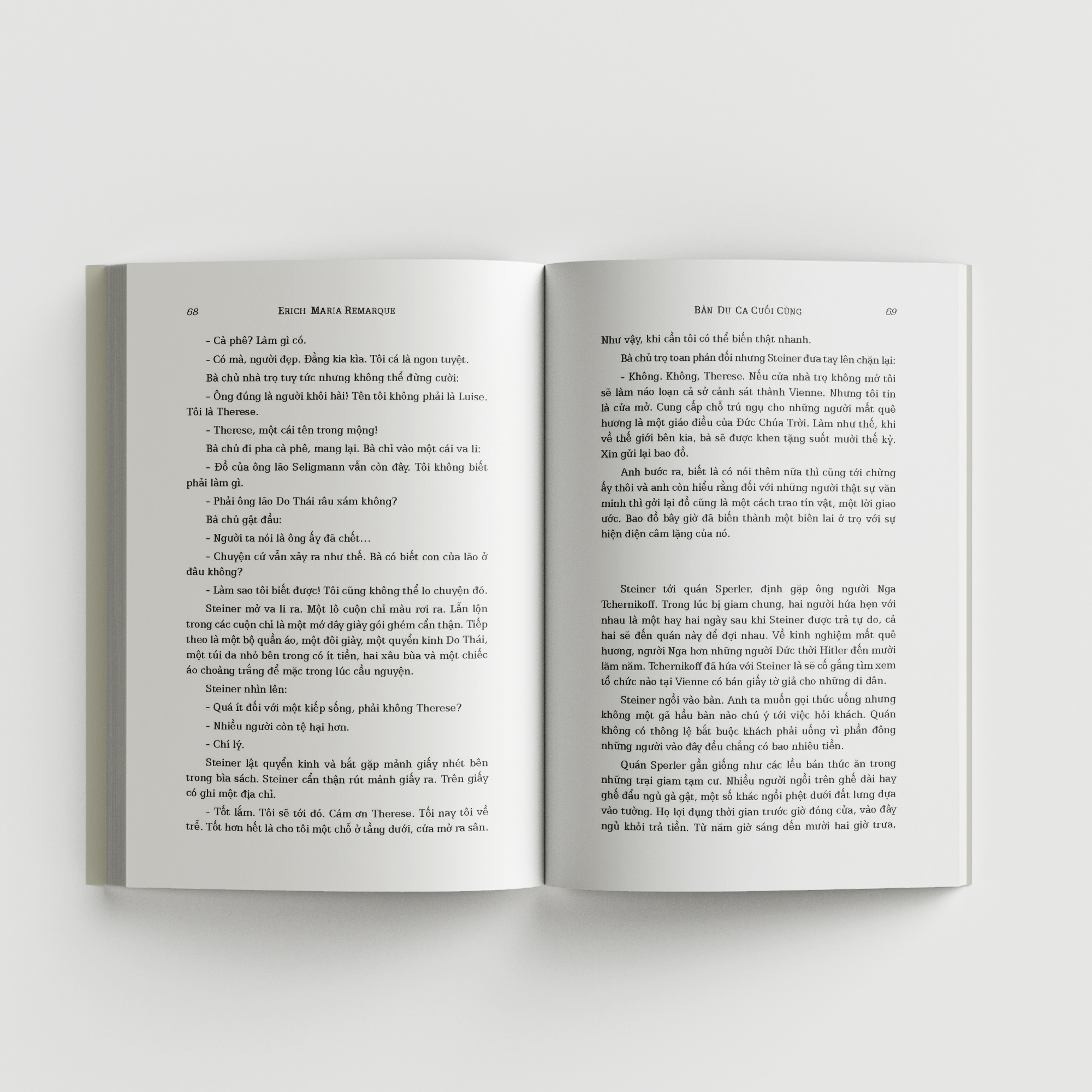 Tên tiếng Việt của cuốn sách này là "Bản Du Ca Cuối Cùng của loài người không còn đất sống" một cái tên tuyệt đẹp. Tôi bị ấn tượng mạnh đến nỗi khi gặp nó lần đầu tiên trong tiệm sách cũ, không cần biết nó nói về cái gì, tôi mua liền tay. Remarque là tác giả tôi yêu thích nhất trên đời. Tôi có thể viết hẳn một khóa luận về việc tại sao tôi thích ông đến vậy. Mà thôi, hãy nói về tác phẩm này. Bạn có tin rằng con người nhiều khi không bằng mảnh giấy không? Giấy đó có thể là tiền, rõ rồi, và giấy đó có thể chỉ là cái thẻ cư trú. Để xác nhận họ được là NGƯỜI. Tôi tin rằng nếu ai có máu phiêu lưu, phươt phọt sẽ thích cuốn sách này ghê gớm, bởi nó là liên tục những cuộc hành trình từ biên giới này đến biên giới khác, từ nhà kho, quán trọ, đến khách sạn rồi cả vỉa hè, ghế đá. Nhưng khác với Phượt, đi để cho vui, còn họ, đi là để chạy trốn, cái đói, cái chết, nhà tù. Đi là để tồn tại. Hai nhân vật: Một Steiner già đời, lọc lõi, tinh quái và một Kern trẻ dại, ngờ nghệch và còn khá mộng tưởng lẫn hoài bão đều bị bắt nhốt vì cư trú bất hợp pháp. Họ che chở và cùng nhau vượt qua biết bao chặng đường dài. Có một cảnh tôi ám ảnh mãi, là lần chia tay không lời của Steiner với người vợ. Lặng lẽ, giữa phố xá nhốn nháo và đông đúc nhưng đầy thương yêu và đau đớn. Đến nỗi tôi hiểu và đau nỗi đau của người đàn ông bị buộc phải cắt lìa với tình yêu của đời mình ấy. Trong *** khó, lầy lội và đêm đen, Remarque vẫn đem cho độc giả biết bao tình người: chia nhau từng xu lẻ, từng hớp rượu, món ăn, chỗ ngủ, và thấp thoáng hy vọng, dẫu rằng "vòm trời cao kia vẫn màu xám của vũ khí" Tôi vừa muốn viết nhiều về cuốn sách này, vừa muốn viết ngắn vì chẳng muốn tiết lộ tình tiết chút nào với những người đến sau. Chỉ biết rằng khi chiến tranh, mạng người mong manh quá, nhưng tình người cũng đủ đầy quá. Người tốt còn nhiều, hãy luôn tin như vậy, và đủ để bạn có thể sống vui vẻ, dẫu chẳng còn đất sống. Một cuốn sách nên đọc và phải đọc. ---Bach Tran Quang---