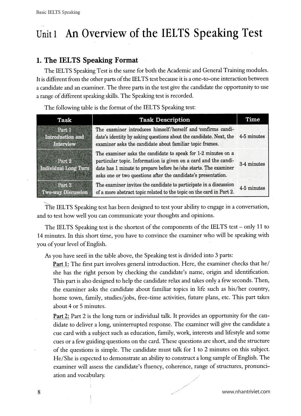 - Unit 1: An Overview of the IELTS Speaking Test