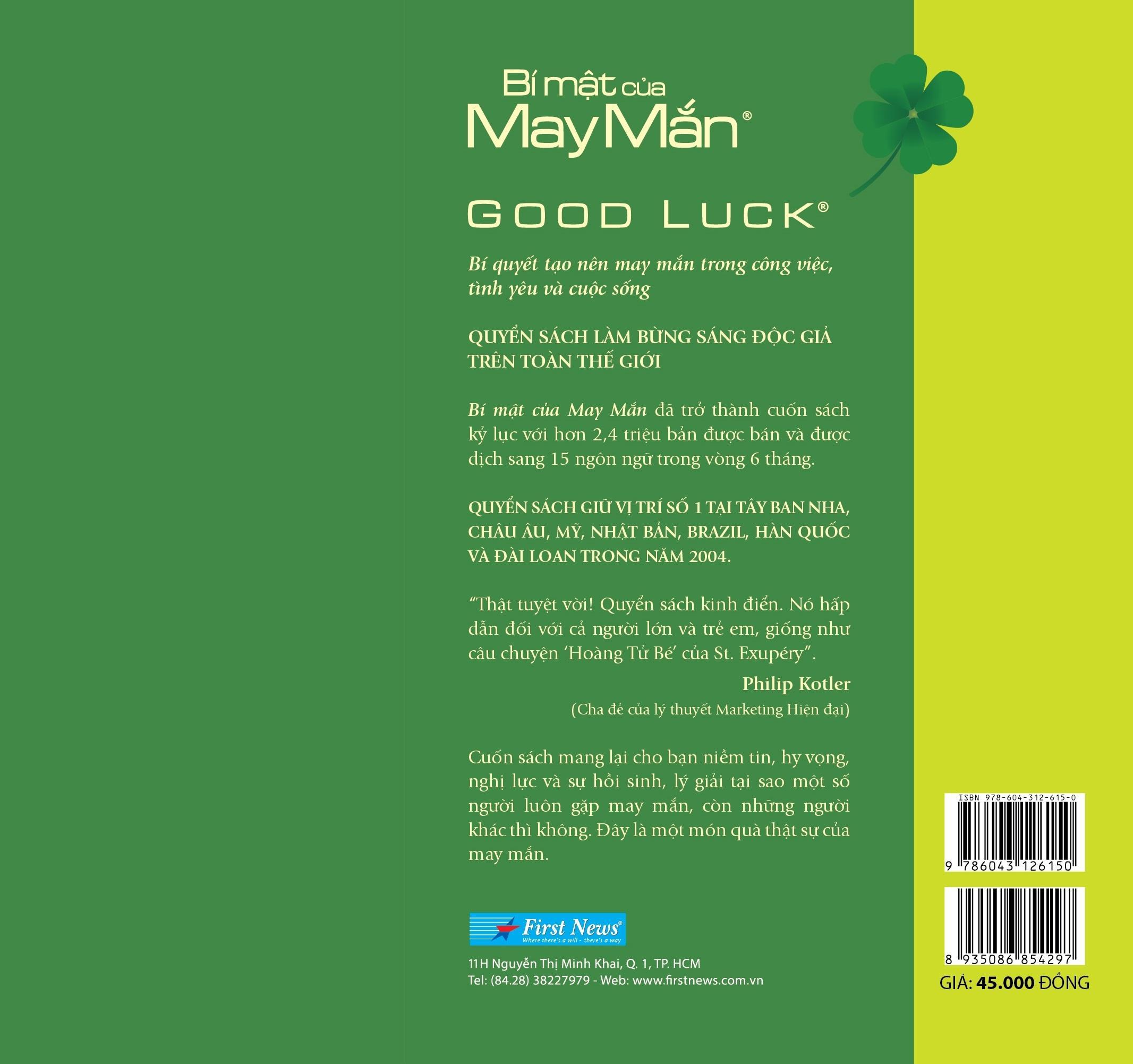 Câu chuyện trong Bí mật của May mắn hấp dẫn như câu chuyện thần thoại với những chân lý thực tế và vĩnh hằng của cuộc sống, mang lại cho người đọc, niềm tin, hy vọng, những trải nghiệm quý báu, đồng thời lý giải tại sao một số người luôn gặp được may mắn trong khi những người khác lại không gặp. Cuốn sách đã mang đến cho độc giả một cái nhìn thú vị và sâu sắc về thay đổi những điều kiện cần thiết để tạo ra và duy trì sự may mắn trong cuộc đời chúng ta. Độc giả khắp mọi nơi đã chú tâm thưởng thức, chuyền tay cho bè bạn và mỗi người đều mua nhiều bản để tặng cho gia đình, người thân, đồng nghiệp như những món quà đặc biệt của sự may mắn.Good Luck là một câu chuyện lạ thường hướng đến một bài học vô cùng giá trị về cuộc sống: Sự may mắn không xuất hiện ngẫu nhiên trong hành trình cuộc sống chúng ta; chính chúng ta phải tìm và tạo ra những điều kiện để may mắn tìm đên với mình. Dưới ngòi bút của Alex Rovira và Fernando Trías de Bes - hai nhà tư vấn tâm lý và tiếp thị hàng đầu thế giới đã có công trình nghiêm cứu về thái độ, hành vi con người cũng như ước mong, niềm tin của họ đối với sự may mắn, thành công trong cuộc sống, câu chuyện giản dị này có thể được áp dụng rất rộng rãi cho tất cả mọi người và có khả năng khích lệ một cách độc đáo.