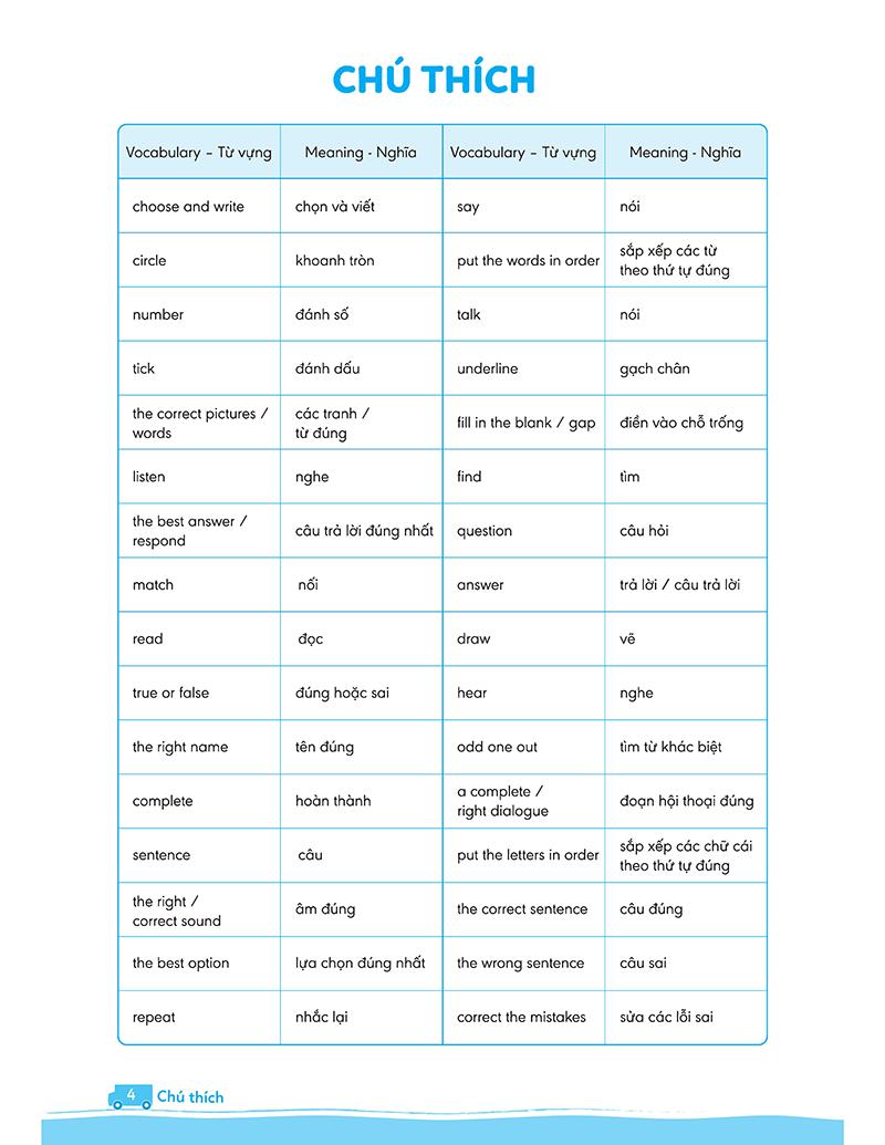 Cuốn sách thích hợp cho giáo viên sử dụng như tài liệu giảng dạy tham khảo hoặc phụ huynh - người muốn tìm tài liệu kèm con học Tiếng Anh tại nhà. Nội dung của cuốn sách gồm hệ thống bài tập luyện 4 kỹ năng cơ bản giúp các em em ôn tập kiến thức trên lớp và bài tập mở rộng nâng cao để các em rèn luyện và làm quen với các kì kiểm tra đánh giá.