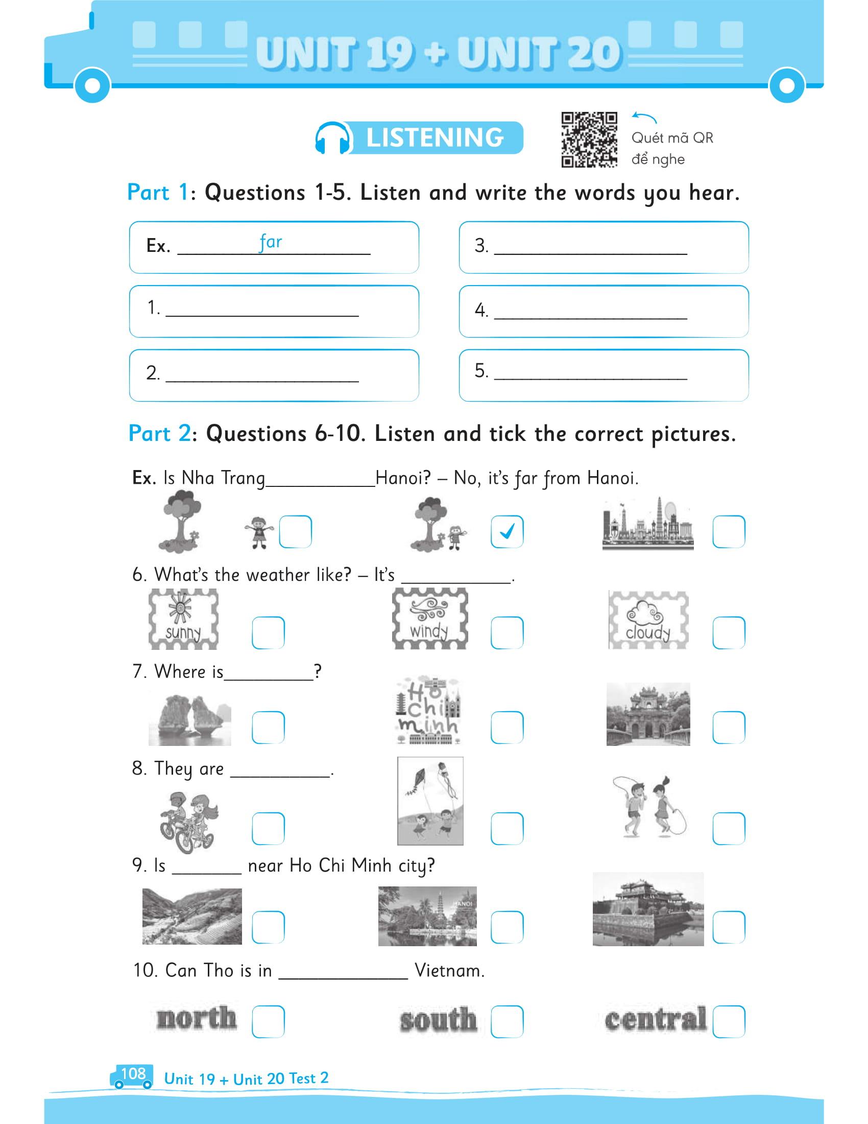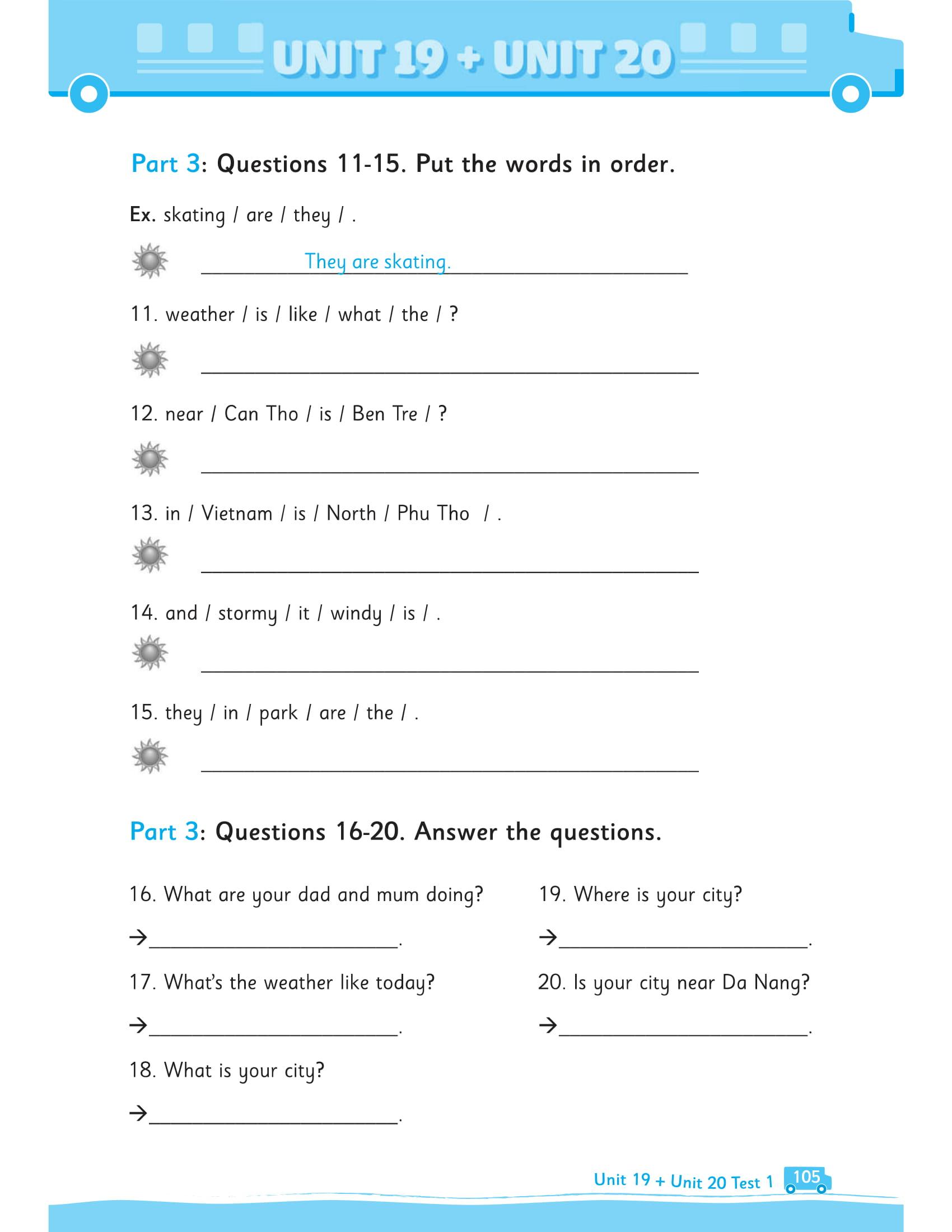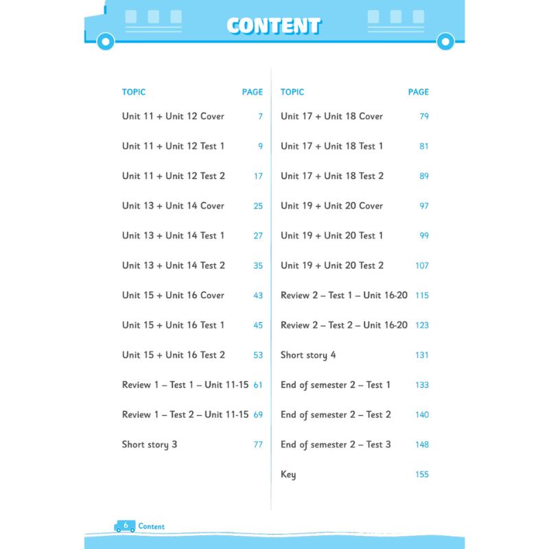 Cứ hai bài sẽ có 2 bài kiểm tra, tất cả các bài kiểm tra đều được thiết kế theo quy định thông tư mới nhất về kiểm tra môn Tiếng Anh tiểu học.
