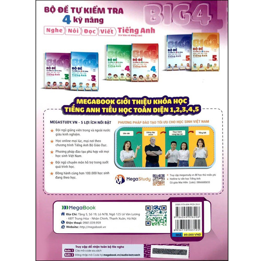 Thông số kỹ thuật Sách Big 4 Bộ Đề Tự Kiểm Tra 4 Kỹ Năng Nghe - Nói - Đọc - Viết (Cơ Bản Và Nâng Cao) Tiếng Anh Lớp 3 Tập 2
