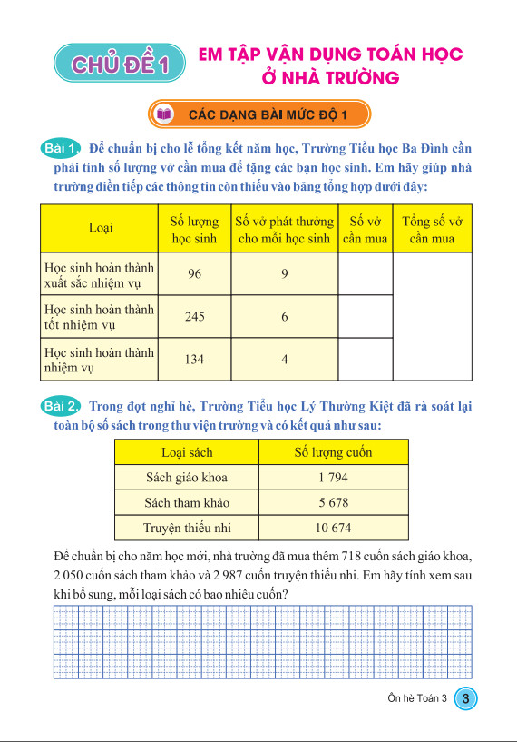 Hè là khoảng thời gian để các em học sinh nghỉ ngơi bên gia đình sau 1 năm học căng thẳng. Đặc biệt là các em học sinh lớp 3, sau 1 năm học với các con chữ, con số và hoàn thành bài thi cuối kì II chắc hẳn các em sẽ rẩ vui vì được nghỉ hè mà không phải học thêm gì cả. Tuy nhiên, vui chơi thì các bạn học sinh cũng không được quên nhiệm vụ học tập đúng ko nào. Hiểu được đó Công ty sách Nhân Dân đã phát hành bộ sách Ôn Hè Môn Toán giúp các bé củng cố lại kiến thức lớp 3 để vững bước lên lớp 4.