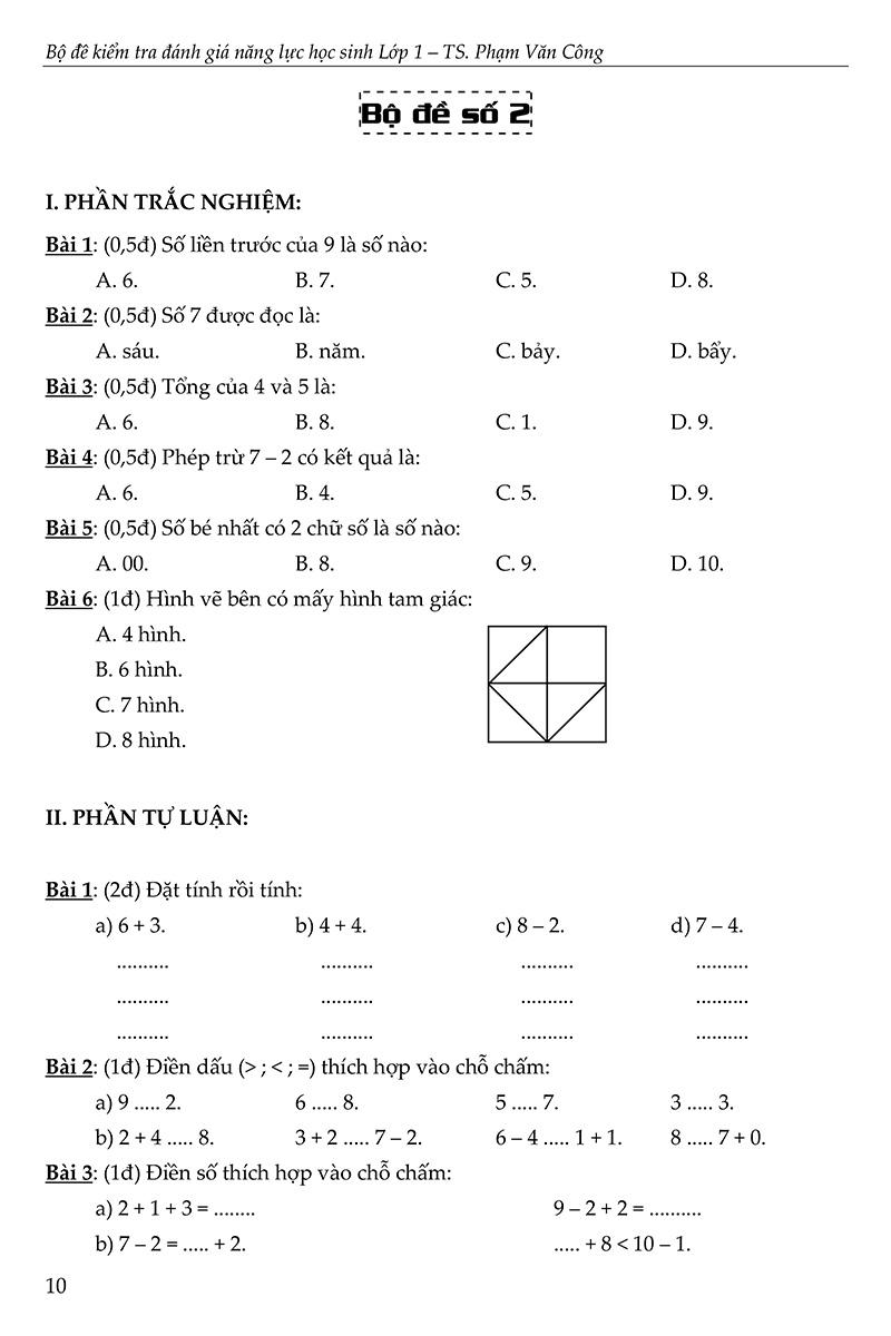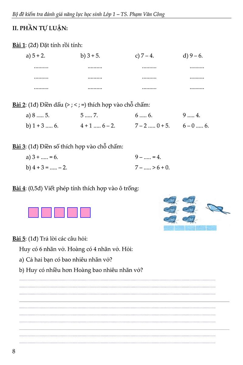Để giúp học sinh lớp 1 có thêm tài liệu ôn tập trước khi đến với các bài kiểm tra cuối mỗi học kì, chúng xin được giới thiệu đến các bậc phụ huynh, các thầy cô giáo và các em học sinh cuốn “Bộ đề Kiểm tra đánh giá năng lực học sinh Lớp 1”. Cuốn sách không chỉ giúp học sinh ôn tập một cách có hiệu quả mà còn là một tài liệu tham khảo hữu ích đối với giáo viên và các bậc phụ huynh. Các thầy cô có thể tham khảo tài liệu này để ra đề kiểm tra cho học sinh một cách phong phú, giúp các em phát huy hết khả năng trong quá trình làm bài. Đối với các bậc phụ huynh, cuốn sách sẽ là một cẩm nang đồng hành cùng các bé trong quá trình học tập.