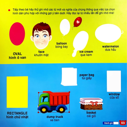 - Cuốn "Bảng chữ cái tiếng Việt" gồm nhiều chủ đề đa dạng như: Các từ bắt đầu bằng chữ A, B, C, cùng bé học từ vựng, học từ mới thật vui… Ngoài ra còn có miếng dán hình sticker đa dạng bé sẽ vừa học vừa chơi với các con số, tự vựng thông qua các hình dán màu sắc giúp tăng khả năng nhận biết, ghi nhớ và kết nối hình ảnh với thế giới xung quanh.
