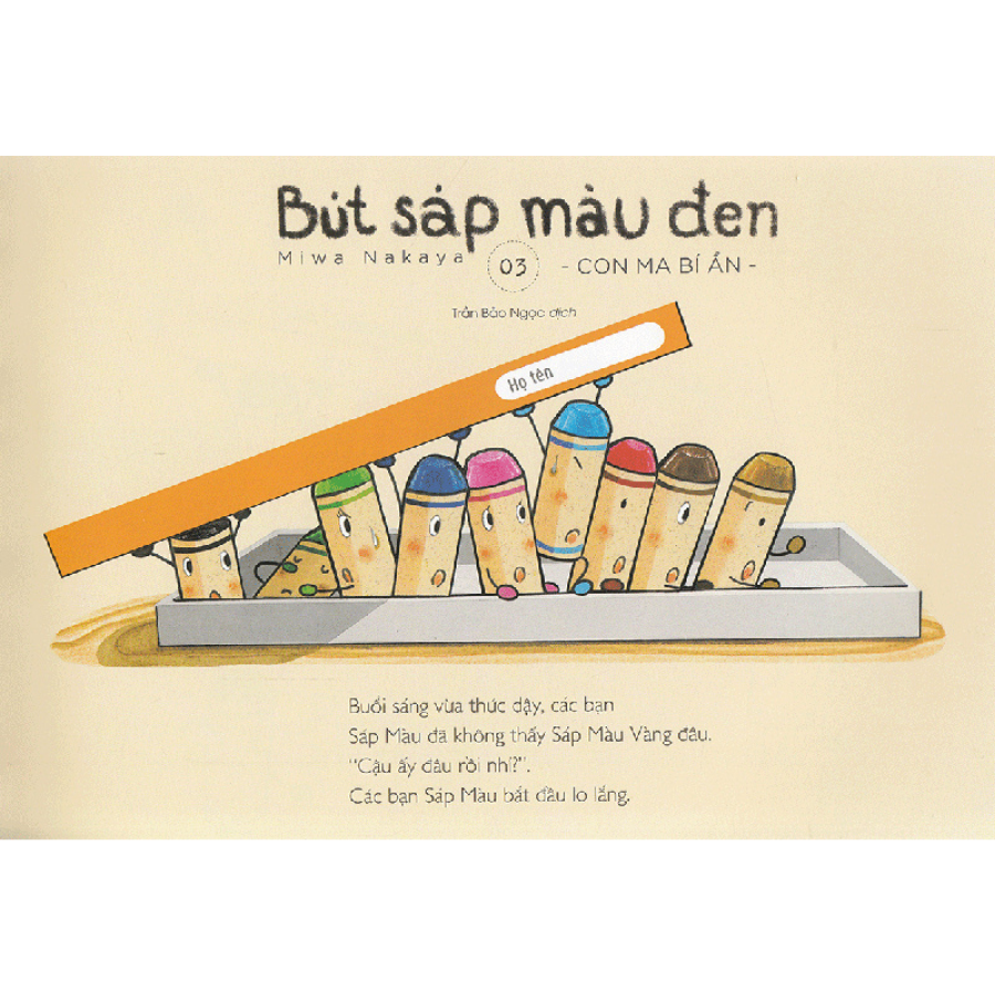 - Rốt cuộc các bạn sáp màu đã đi đâu, sáp Màu Đen có tìm ra các bạn của mình không và điều gì đã khiến các bạn sáp màu biến mất? Các bé hãy cùng sáp Màu Đen khám phá sự thật về con ma bí ẩn này nhé! Câu chuyện này sẽ kích thích trí tò mò, suy luận của các bé và kéo theo nhiều điều bất ngờ ở cuối chuyện. Đặc biệt tập chuyện này còn đề cao tính nhân văn, tình cảm và gắn kết gia đình cùng với bài học giáo dục cho trẻ nhỏ. Chắc chắn ba mẹ và các bé sẽ yêu thích bộ truyện Ehon Nhật Bản này.