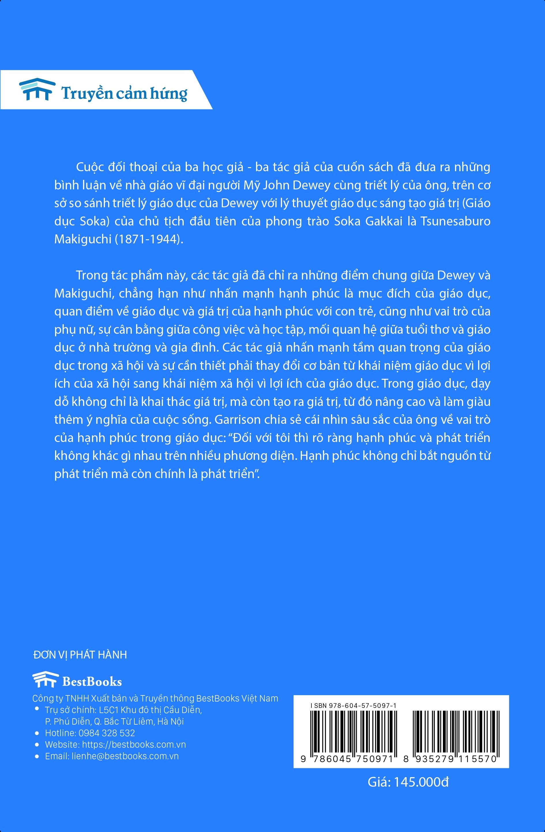 Về tác giả, Jim Garrison là Giáo sư Triết học giáo dục tại Đại học Bách khoa Virginia ở Blacksburg, Virginia, trong khi Larry Hickman là Giám đốc Trung tâm nghiên cứu Dewey và Giáo sư Triết học tại Đại học Southern Illinois Carbondale; cả hai đều nguyên là Chủ tịch của Hiệp hội John Dewey. Daisaku Ikeda là Chủ tịch của Tổ chức Soka Gakkai International, một tổ chức Phật giáo với hơn 12 triệu thành viên trên toàn thế giới. Ông đã viết và giảng dạy rộng rãi về Phật giáo, chủ nghĩa nhân văn và đạo đức toàn cầu. Cuộc đối thoại của ba học giả đã đưa ra những bình luận về nhà giáo vĩ đại người Mỹ John Dewey và triết lý của ông, và so sánh triết lý giáo dục của Dewey với lý thuyết giáo dục tạo giá trị (Giáo dục Soka) của chủ tịch đầu tiên của phong trào Soka Gakkai là Tsunesaburo Makiguchi (1871-1944).
