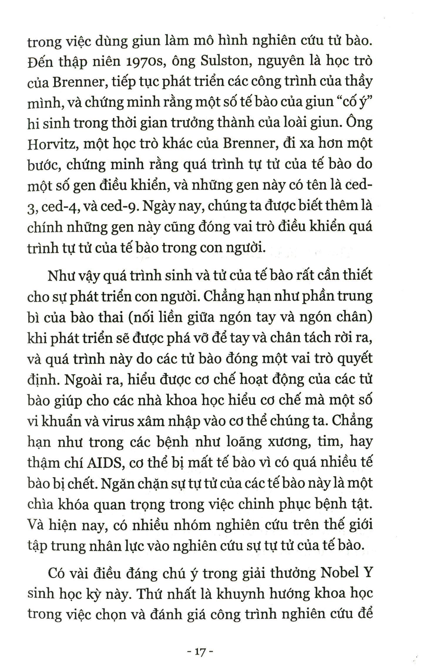 Quyển sách cung cấp nhiều thông tin thú vị về giải Nobel sinh lý học hay y học như trao giải cho người nhận đã qua đời cách đó 3 ngày, tình huống chưa từng xảy ra trong lịch sử trao giải nobel, những sai sót cũng như nhầm lẫn trong việc trao giải. Văn phong dễ hiểu, người ngoài ngành y cũng có thể đọc hiểu.