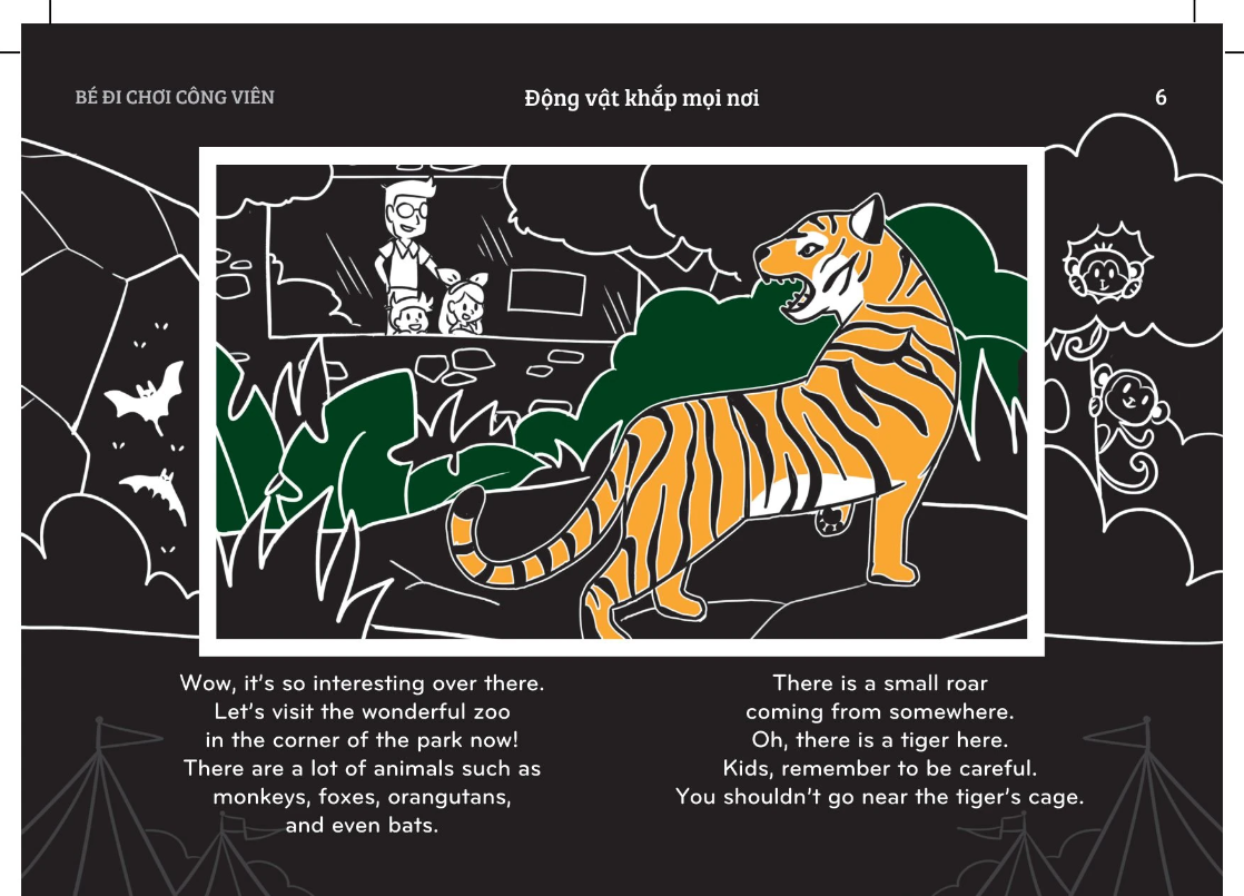 • Với thiết kế đặc biệt, mỗi trang sách đều có thể biến thành một "màn chiếu" sống động khi chiếu đèn pin vào. Những hình ảnh đầy màu sắc sẽ hiện lên rõ nét trên tường, đưa bé vào một thế giới cổ tích kỳ diệu. Câu chuyện được kể bằng thơ, vừa dễ nhớ lại giúp bé làm quen với tiếng Anh một cách tự nhiên.