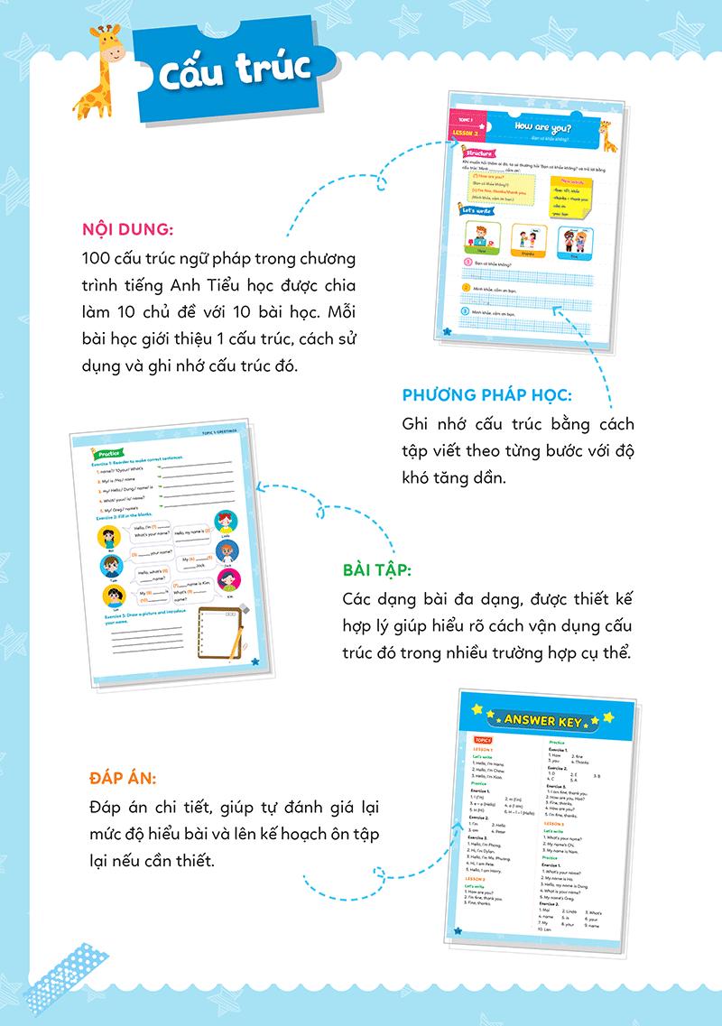 Với những ưu điểm trên, bộ sách Chinh phục 100 cấu trúc Ngữ pháp tiếng Anh Tiểu học chắc chắn sẽ là người bạn đồng hành giúp các em học sinh thích thú, học – hiểu và say mê tiếng Anh ngay từ nhỏ!