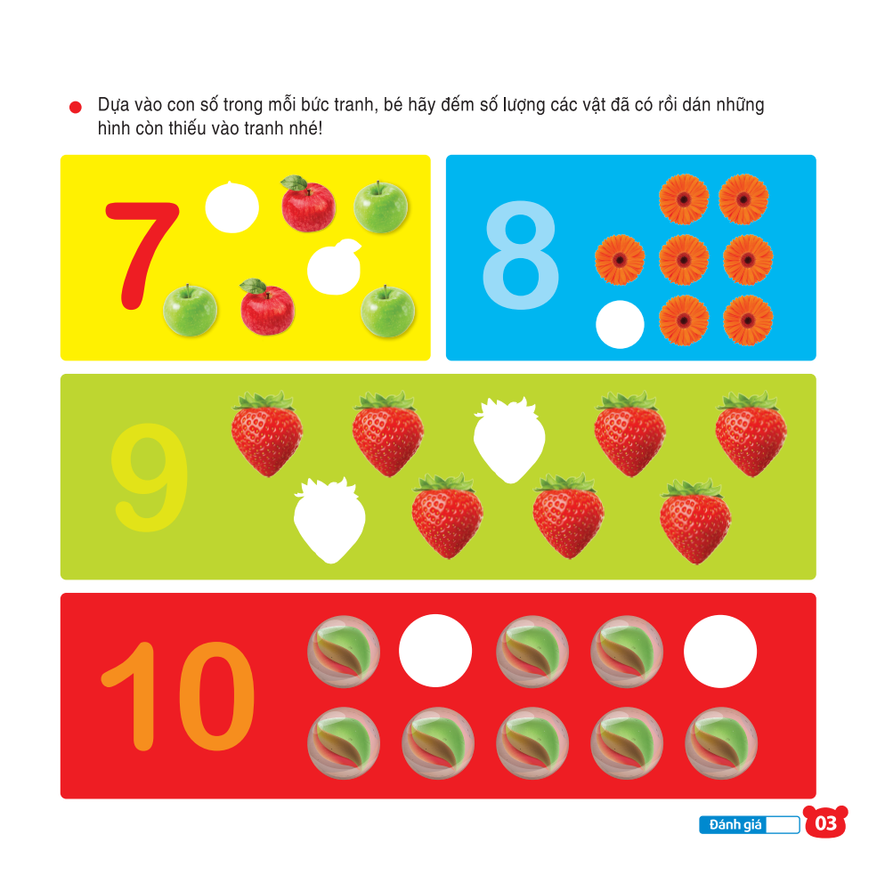 - Giúp bé làm quen với các con số: Qua việc dán hình, bé sẽ dần làm quen với các con số từ 1 đến 10 và các phép tính đơn giản.