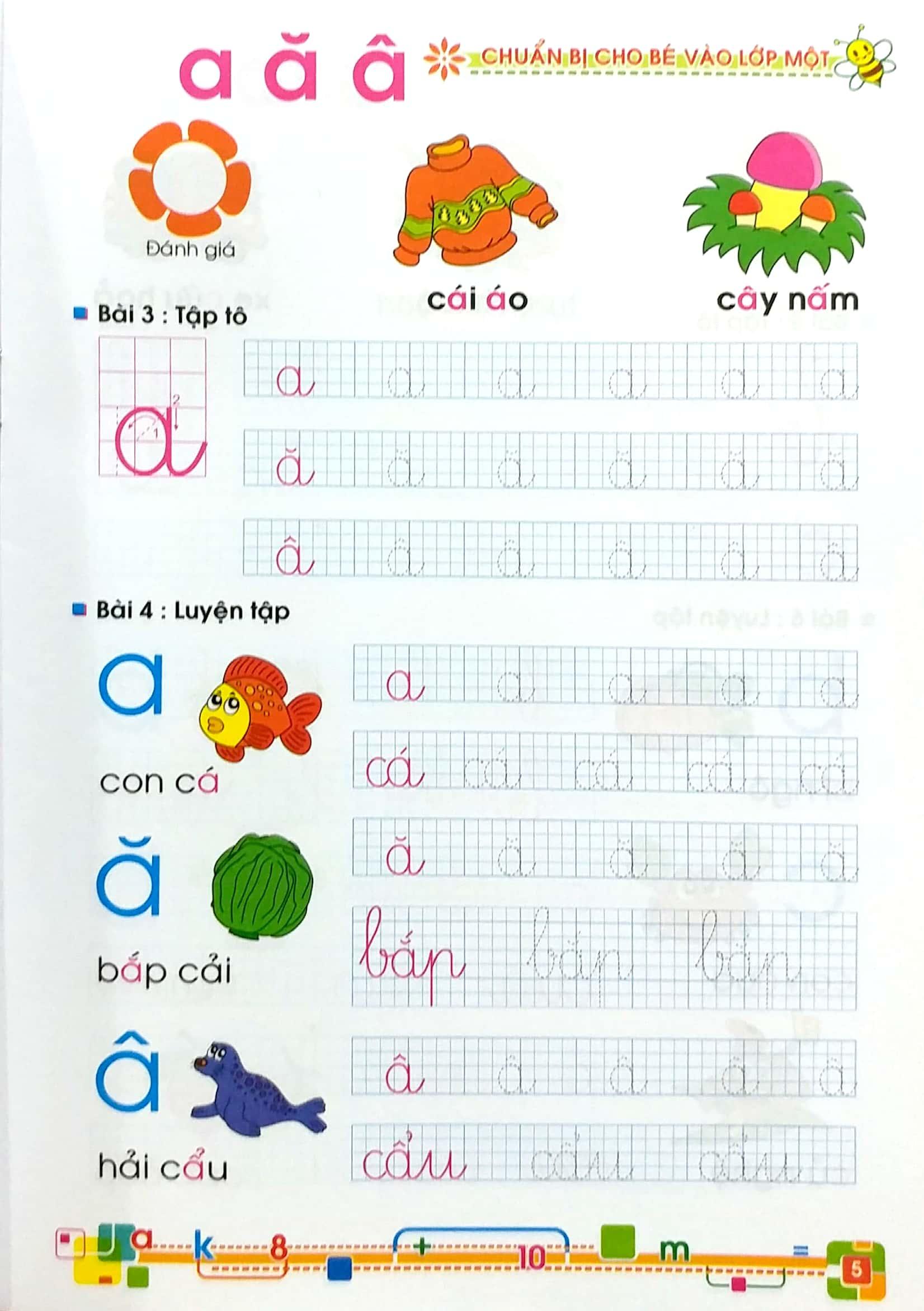 Giúp các bé chuẩn bị vào lớp 1 làm quen với chương trình học tiểu học. Nội dung gần gũi với chương trình giáo khoa và hình minh họa sinh động, bộ sách sẽ giúp các bậc cha mẹ rèn luyện cho con trẻ những nét chữ đầu tiên một cách hiệu quả. Để chuẩn bị vào lớp một, các em cần làm quen và sử dụng thành thục với các chữ cái, các con số từ 1 đến 10, và bước đầu biết viết và ghép vần những chữ cơ bản.